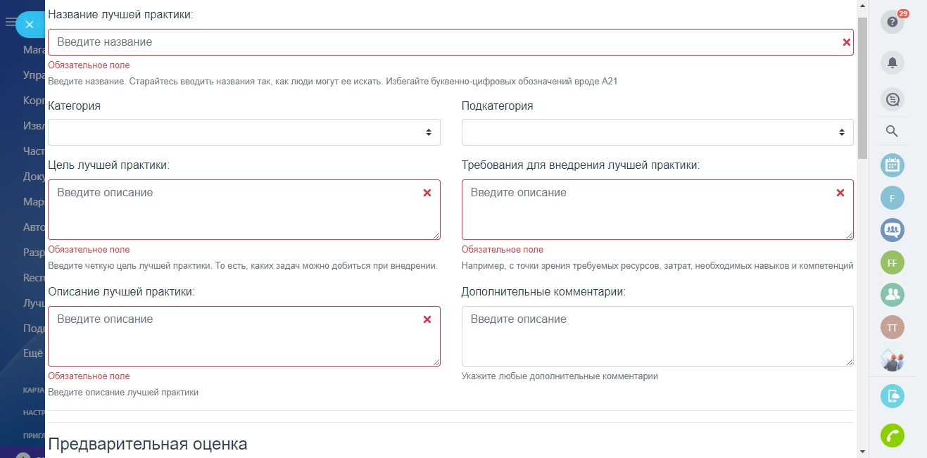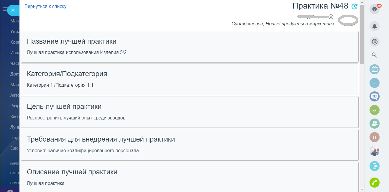 Приложение «Лучшие практики» предназначено для сбора лучших практик сотрудников с целью их дальнейшего внедрения и тиражирования
