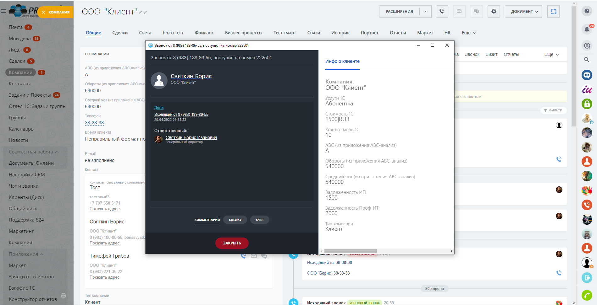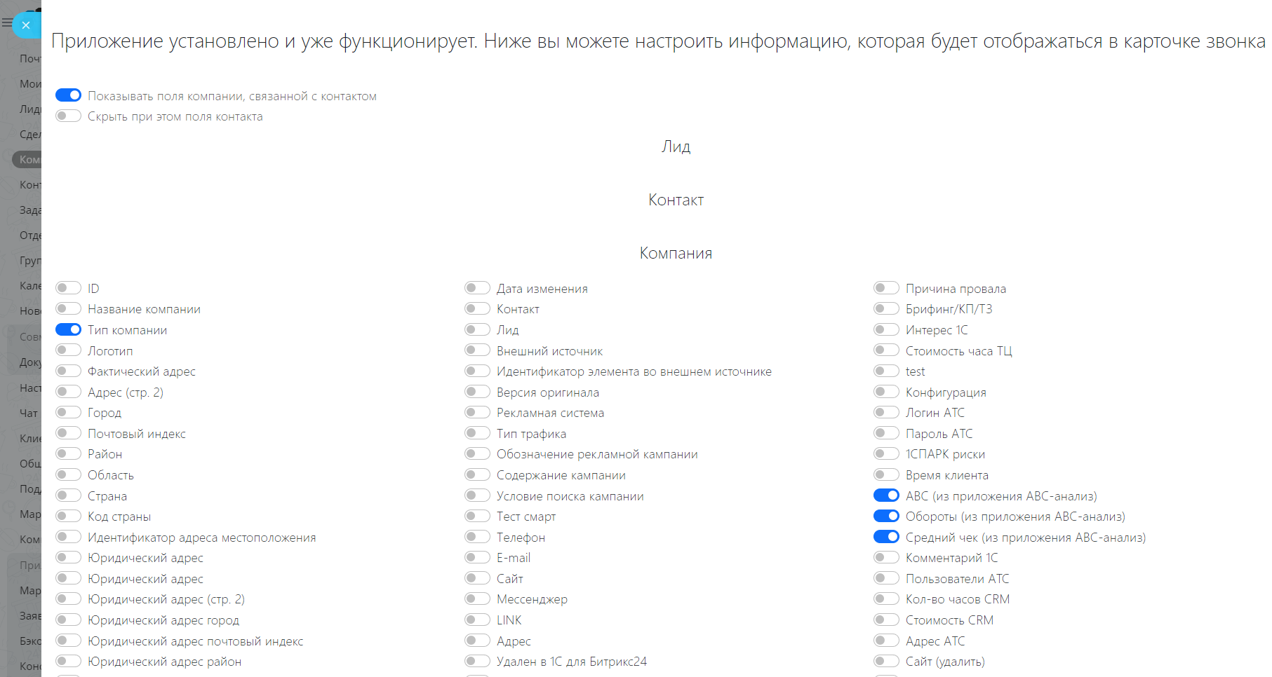 Приложение позволяет добавить любые поля лида, компании, контакта, сделки в карточку звонка. Это позволяет получать оперативную информацию во время звонка, не проваливаясь в сущность.