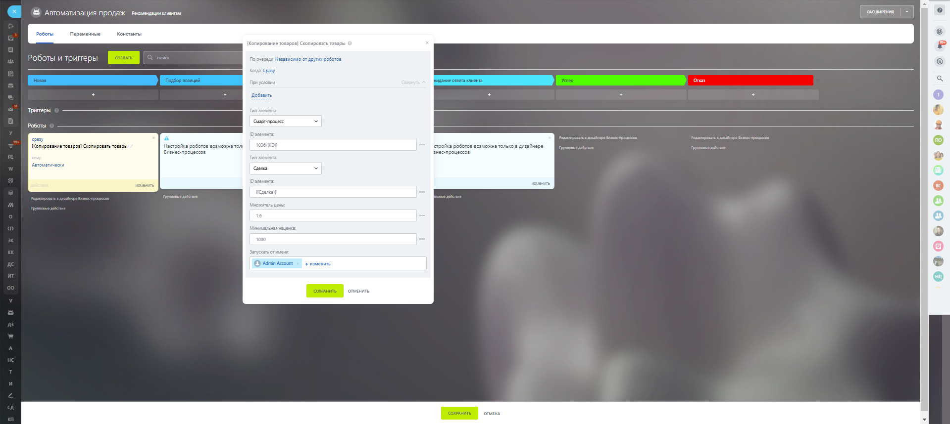 Копирование товаром между сделками и смарт-процессами с возможностью изменения цены.