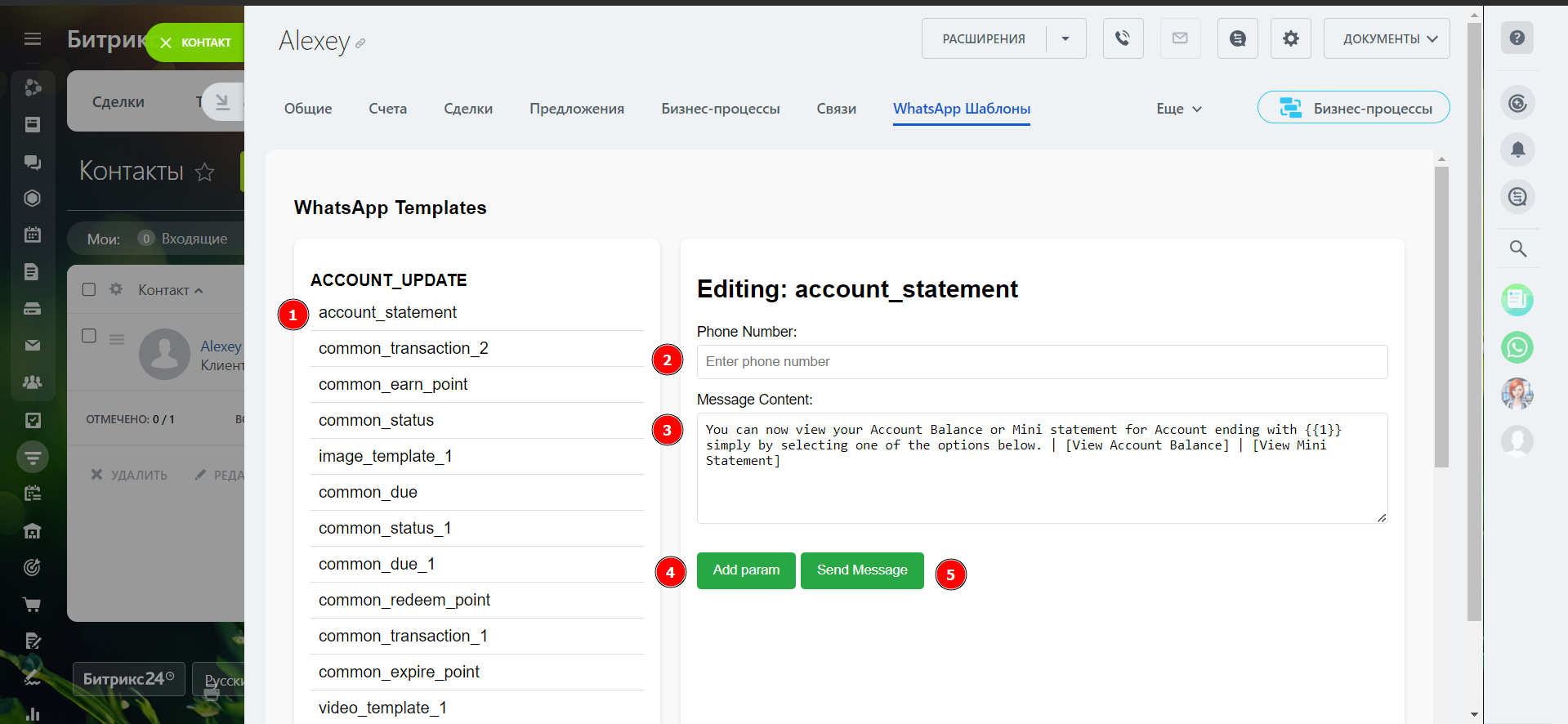 позволяет компаниям отправлять уведомления и проводить маркетинговые кампании через WhatsApp, соблюдая правила и ограничения WhatsApp для обмена сообщениями (например, используя предварительно одобренные шаблоны сообщений для уведомлений).