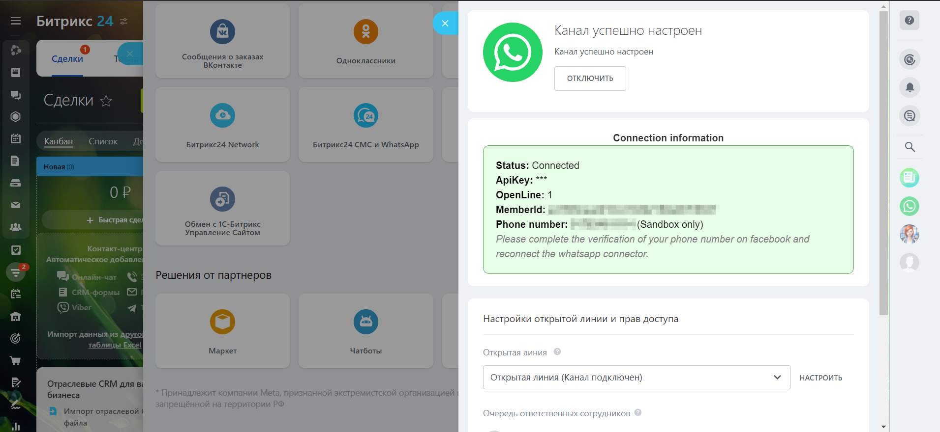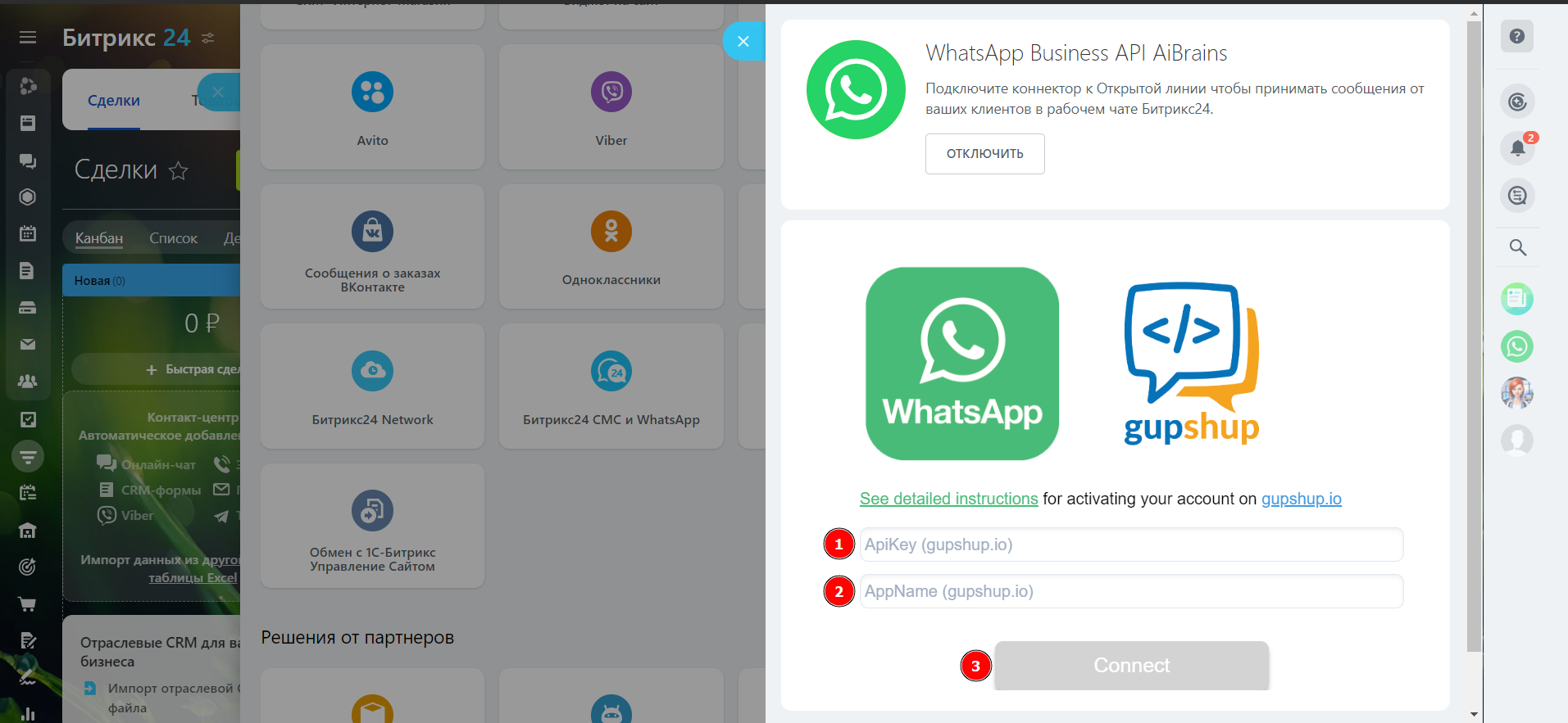 Приложение WhatsApp Business API AiBrains — это коннектор для подключения официального WhatsApp Business API к Открытым каналам Bitrix24 через официального партнера Facebook* gupshup.io