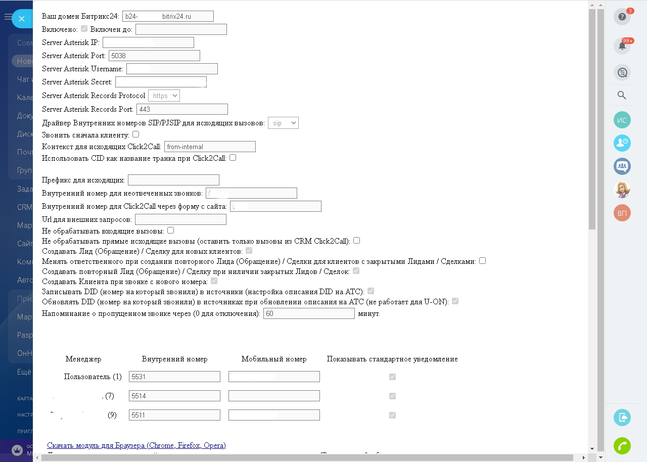 Модуль интеграции любого Asterisk (чистый Asterisk, FreePBX и т.п.) и Kazoo (2600Hz) с Bitrix24.