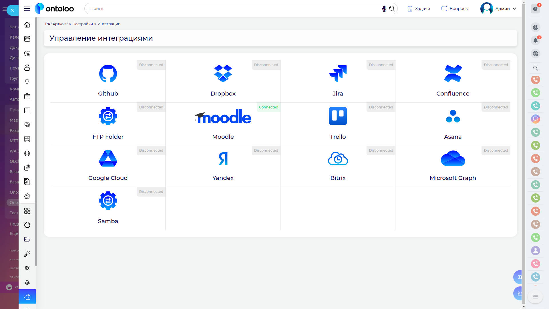 - Интеграция с существующими системами: ONTOLOO легко интегрируется с уже используемыми в Вашей организации информационными системами, что позволяет сохранить и оптимизировать существующие бизнес-процессы. Система также поддерживает мультиязычность и готова предоставить поддержку в случае развития Вашего международного бизнеса.