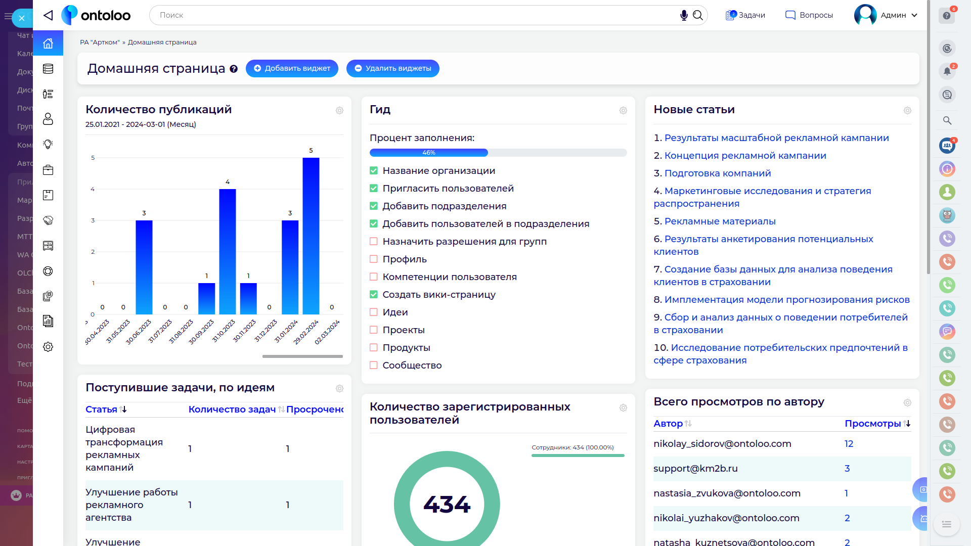 - Мотивация сотрудников: ONTOLOO предлагает возможности дополнительной мотивации и стимулирования сотрудников за создание, обмен знаниями и их использование. Вы сможете формировать предложения, способствующие активному участию и развитию Вашей команды.