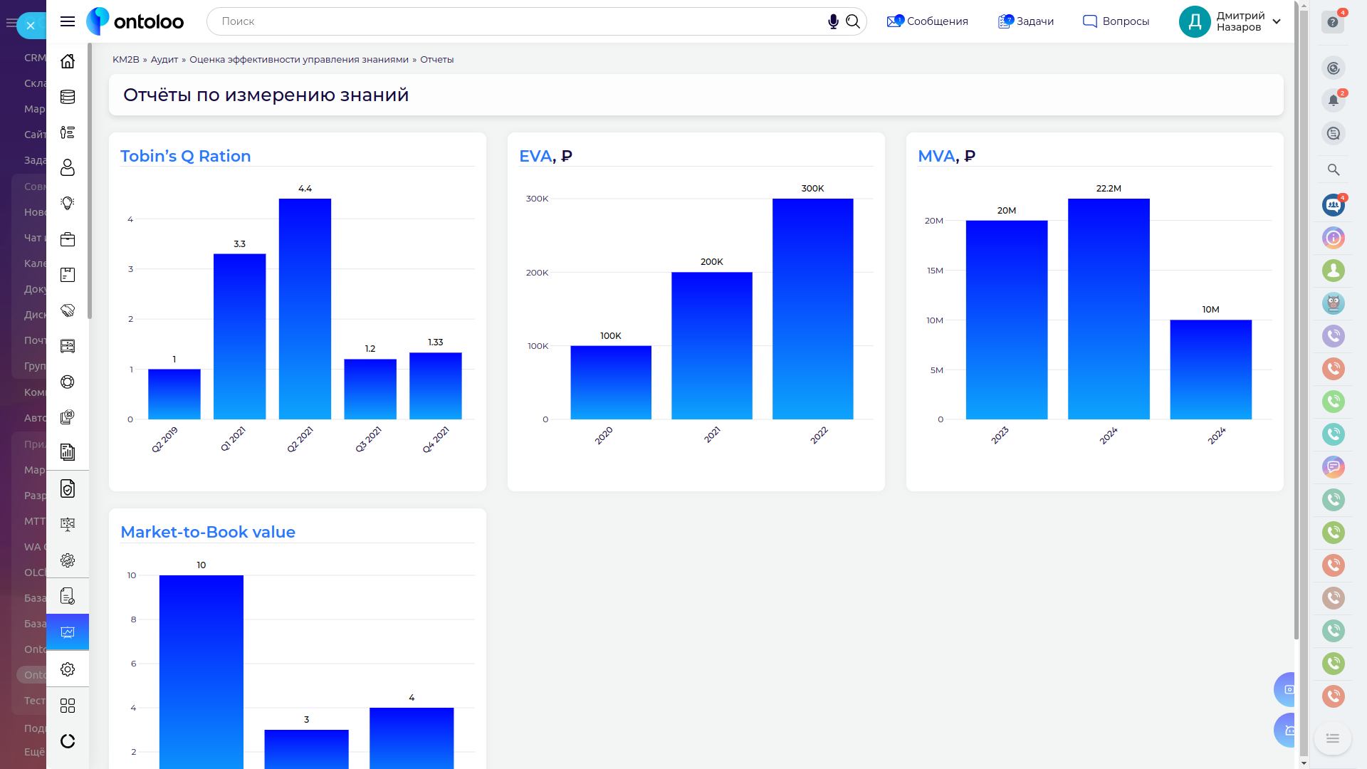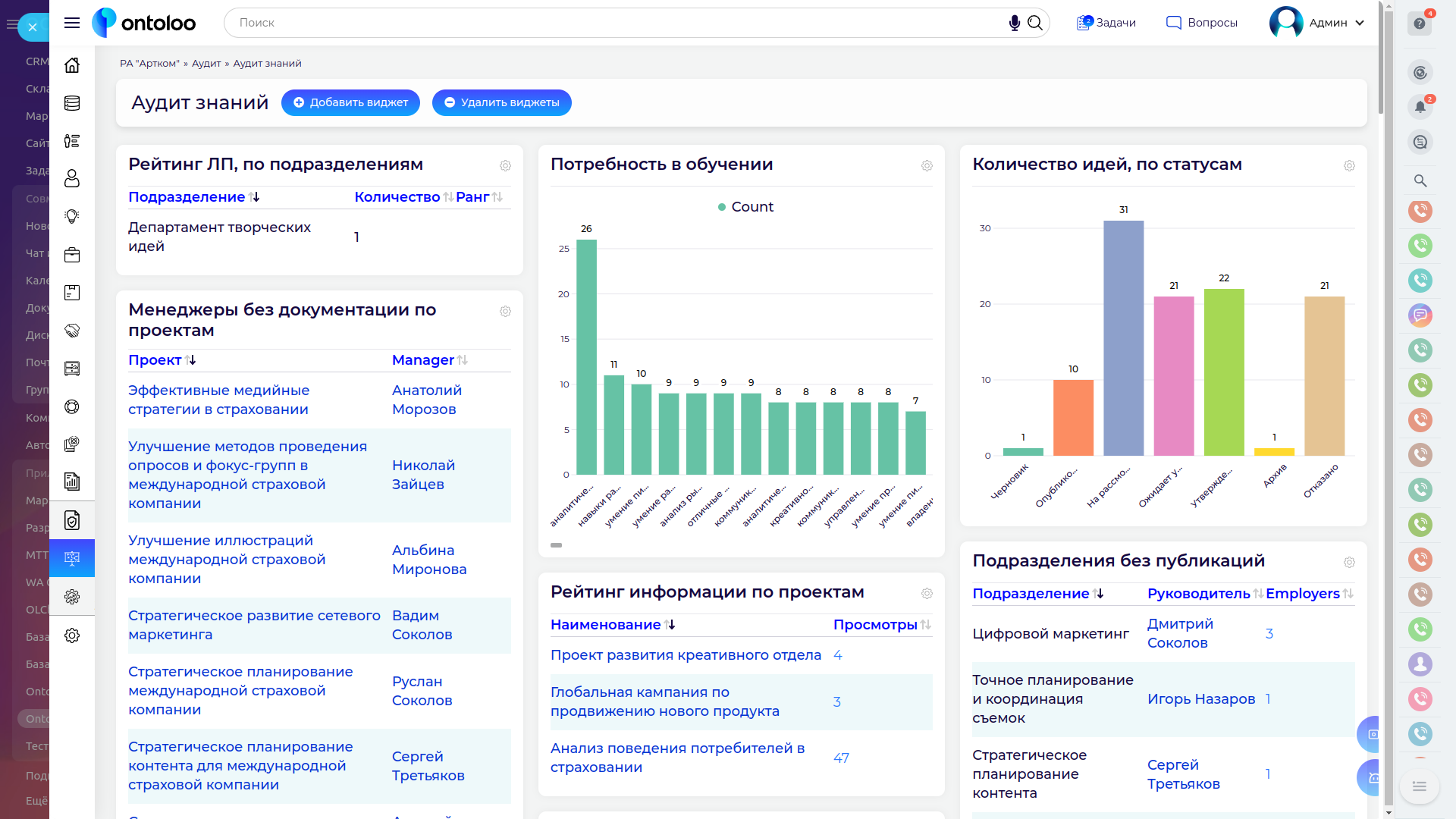 - настраиваемую систему отчетности и аудита знаний в компании;