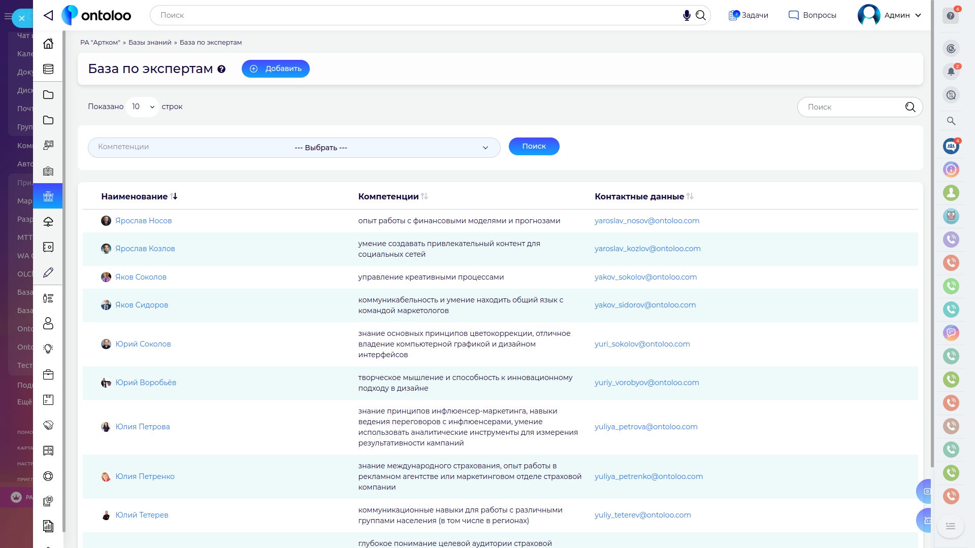- Эффективность решения задач: ONTOLOO позволит Вам оперативно решать производственные задачи путем быстрого доступа к нужной информации и экспертам, знающим в данной области. Вы сможете оптимизировать процессы и повысить продуктивность работы Вашей организации.