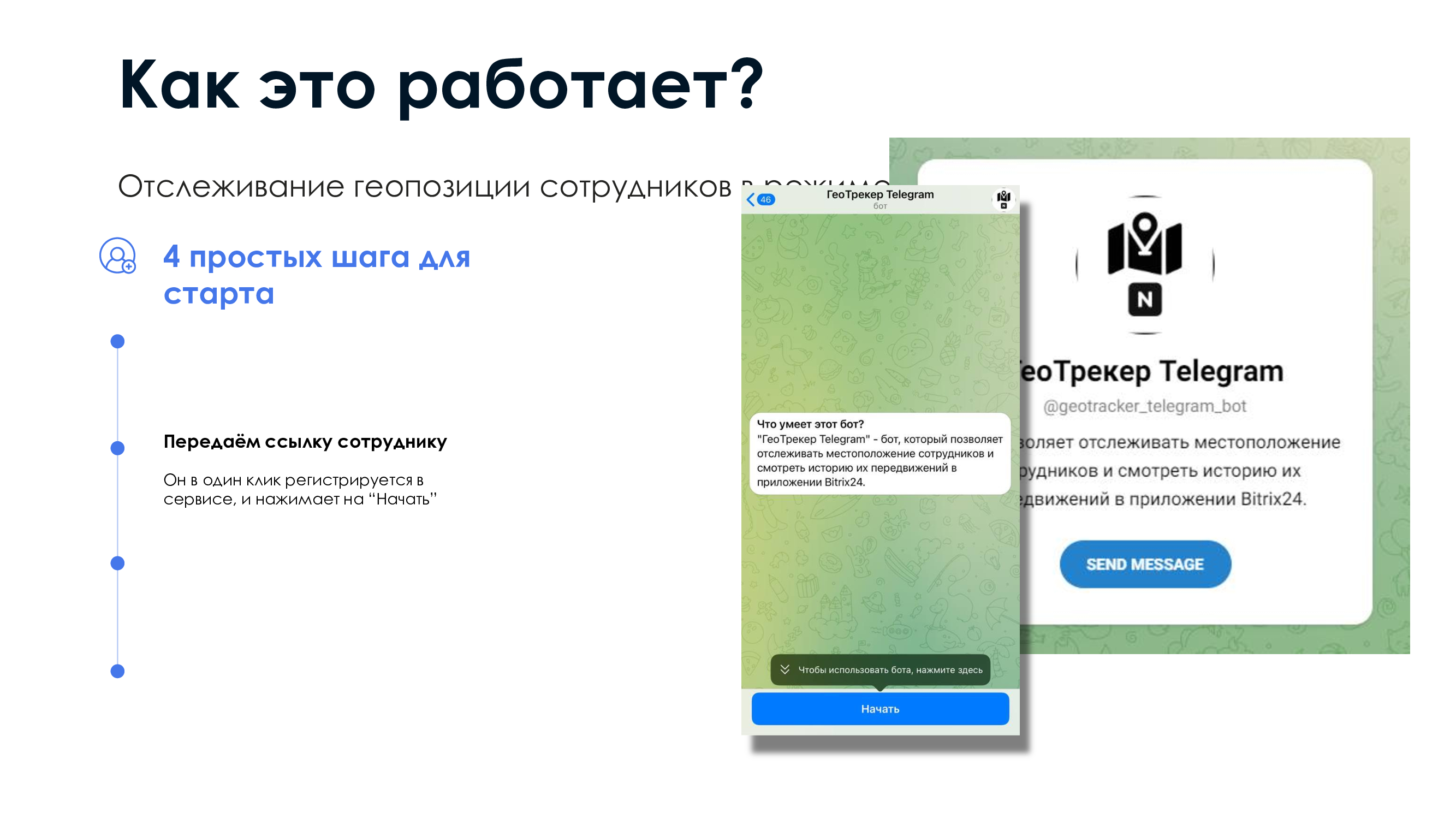 ГеоТрекер Telegram - простой контроль передвижений сотрудников