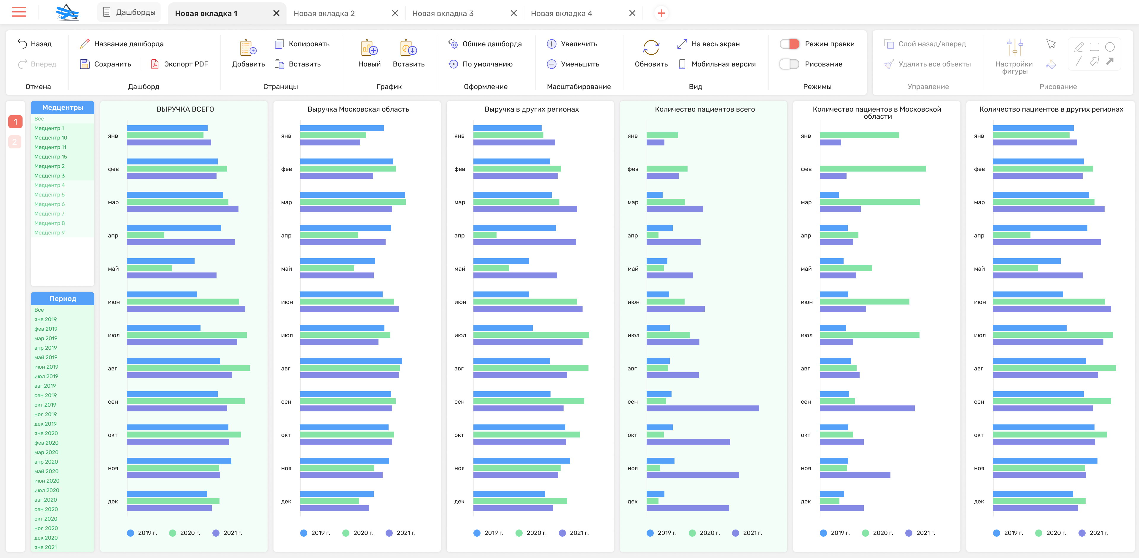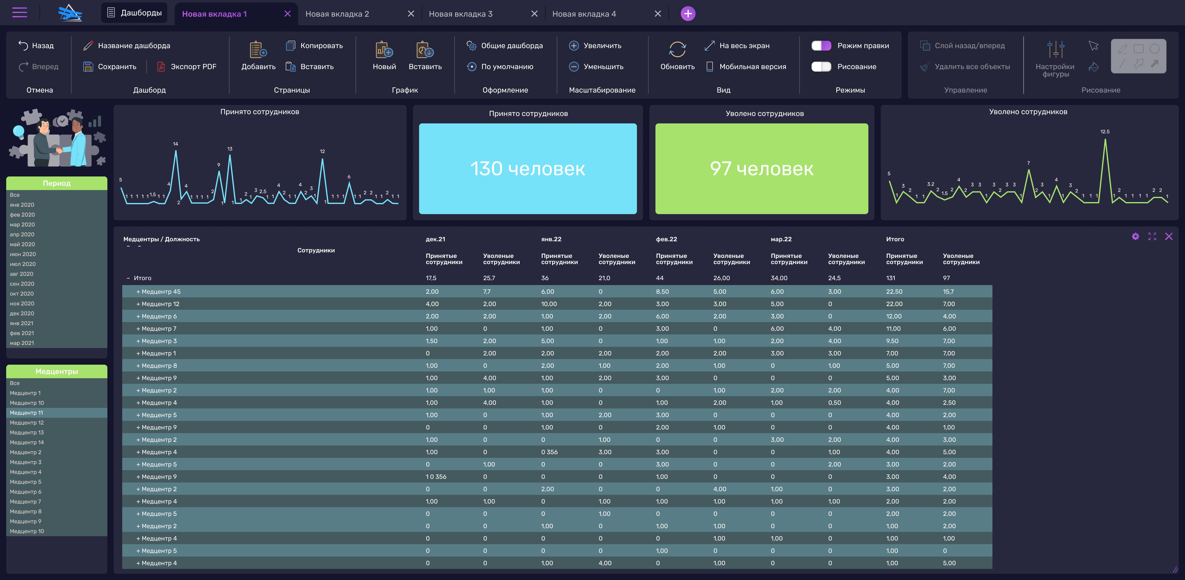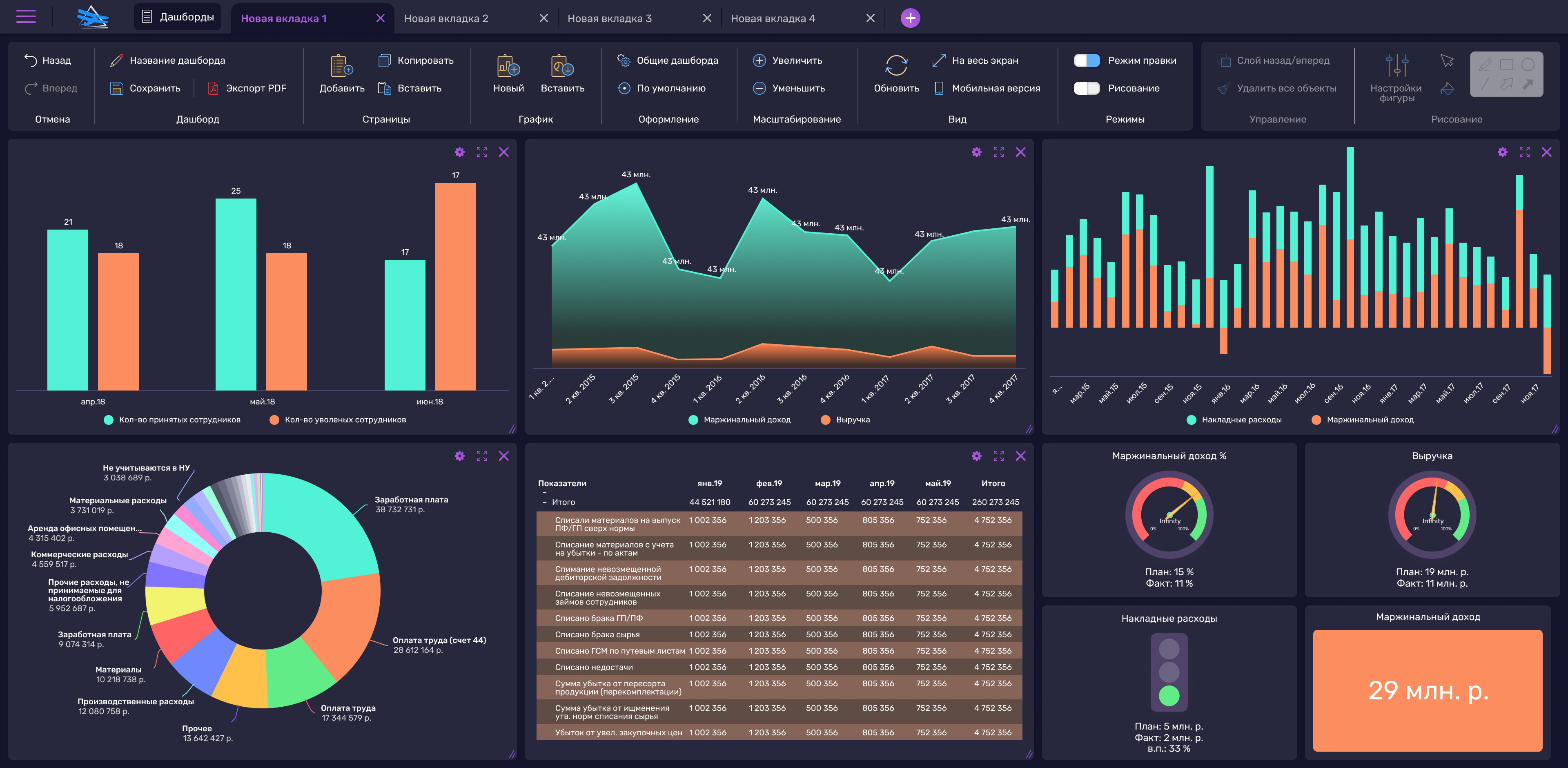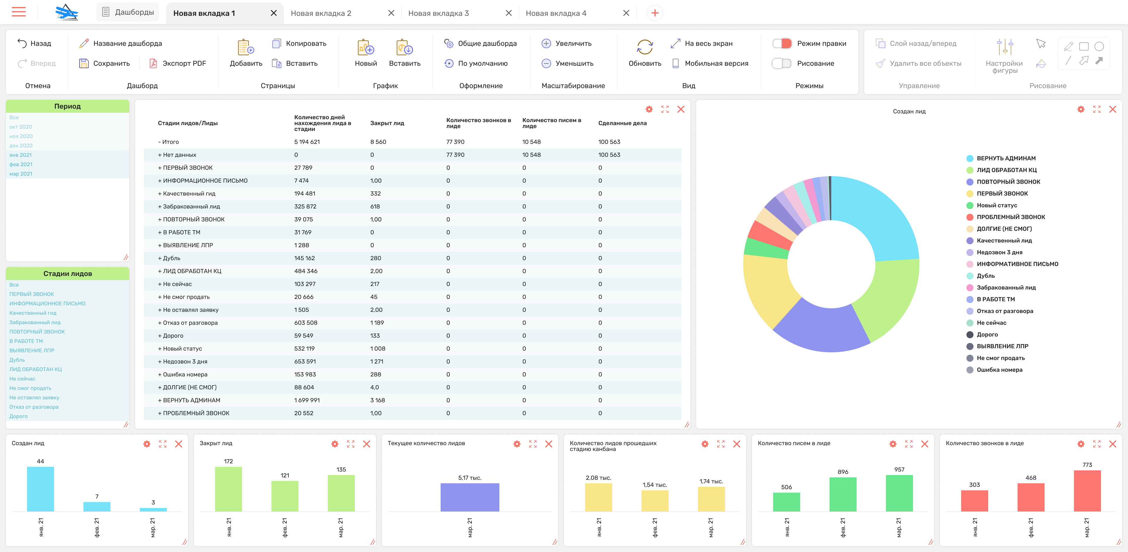 Встроенный конструктор дашбордов - в 10 раз быстрее создавайте отчеты и дашборды без использования кода (NO-CODE).