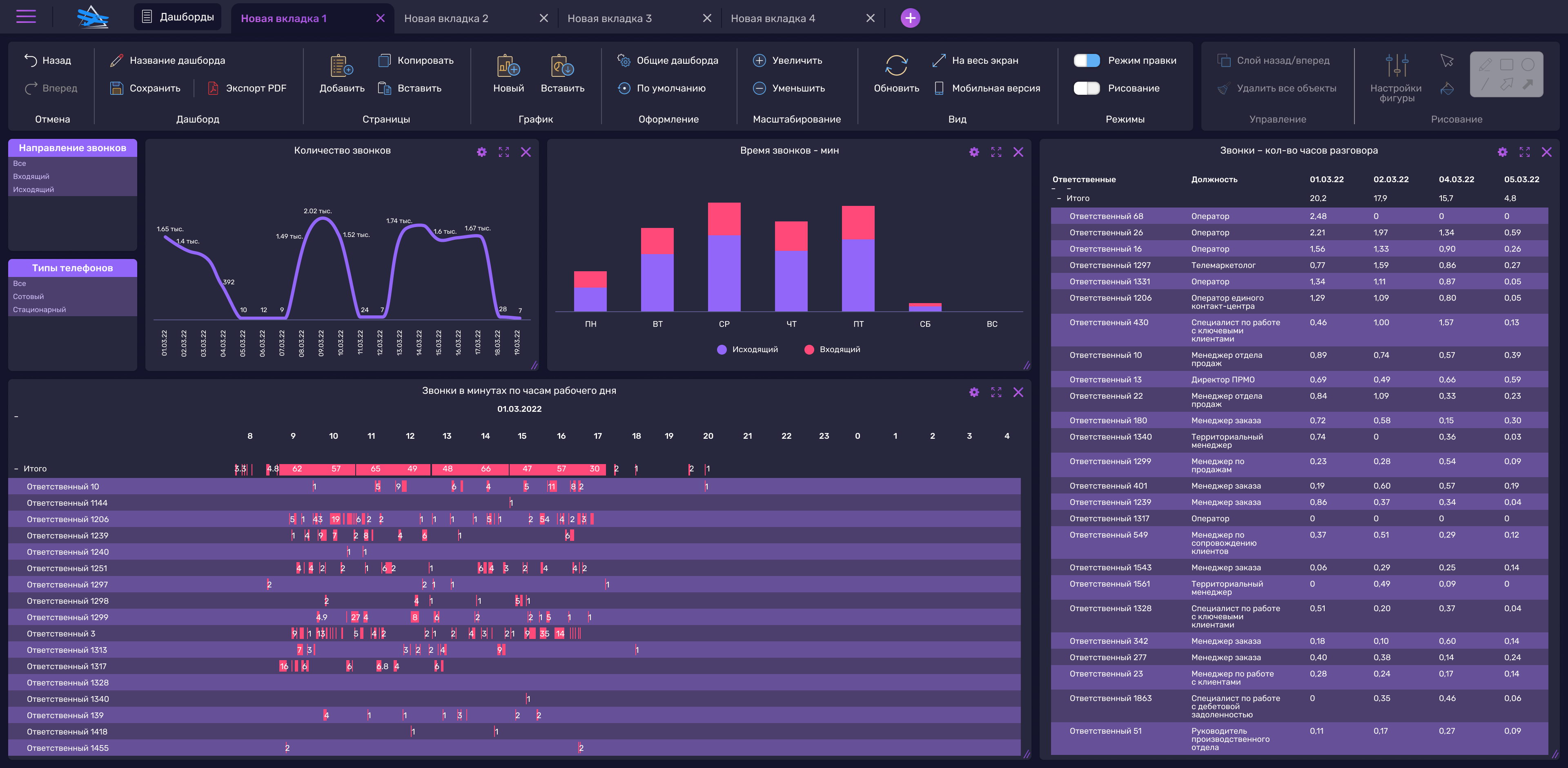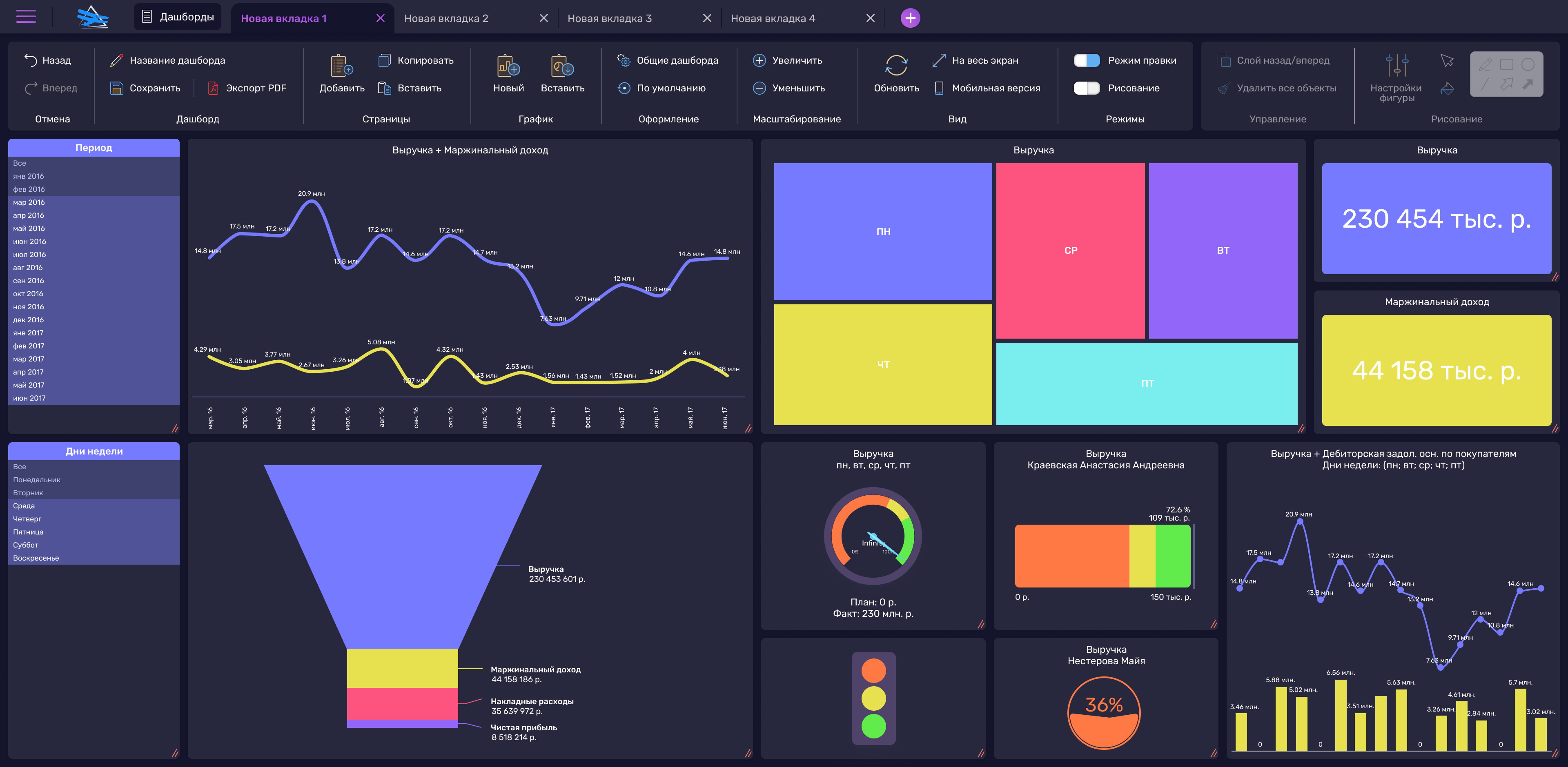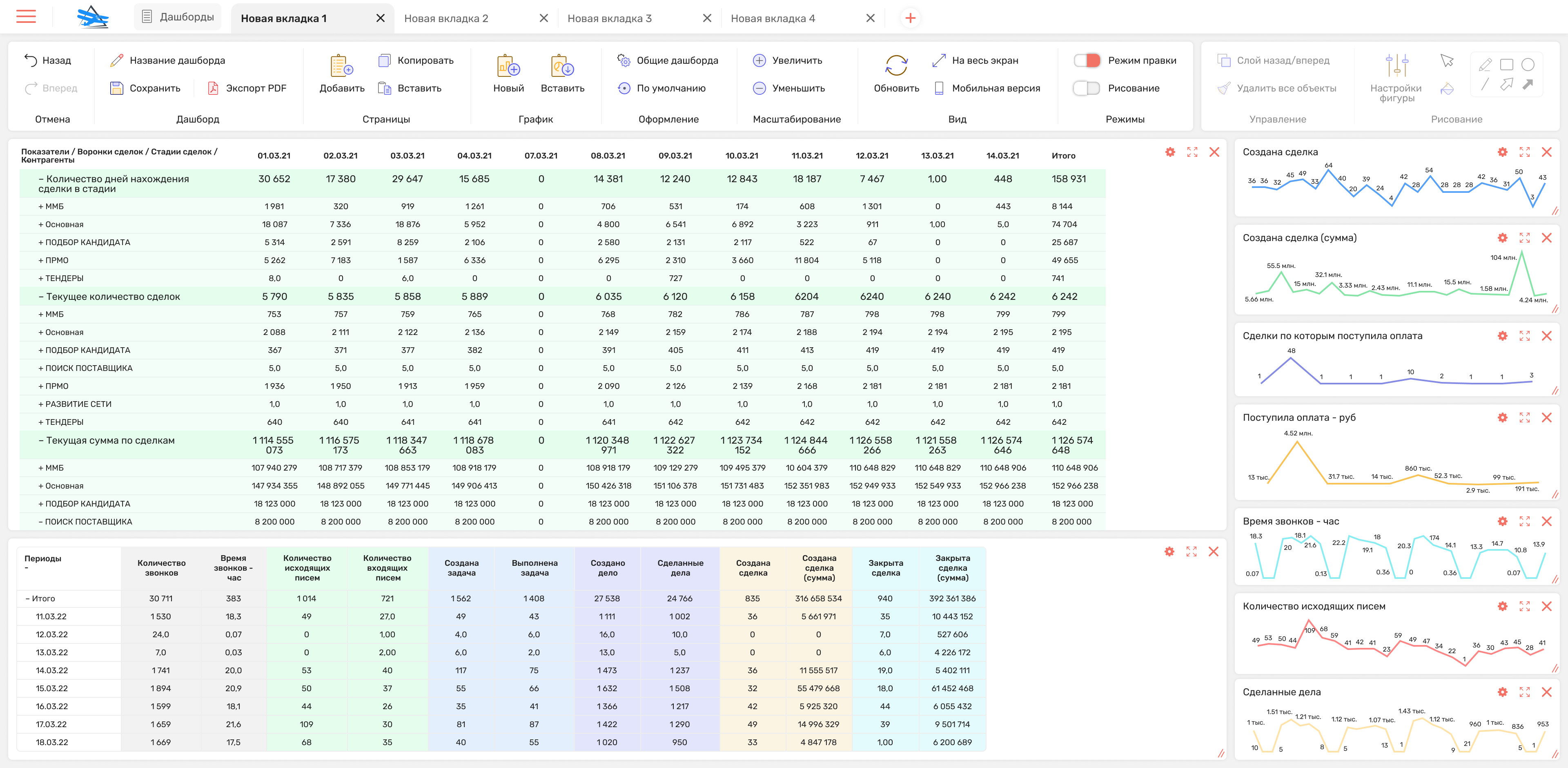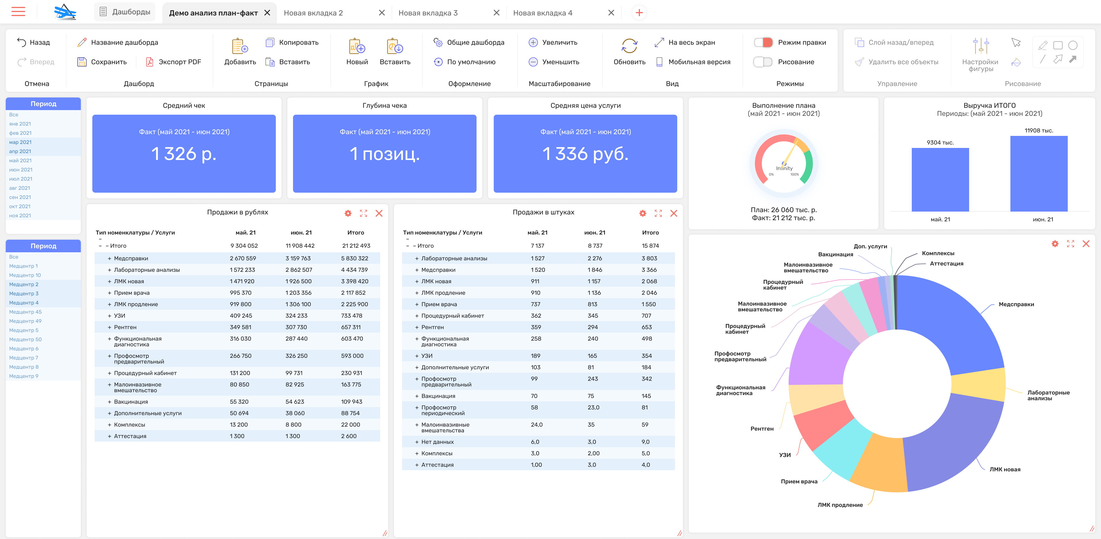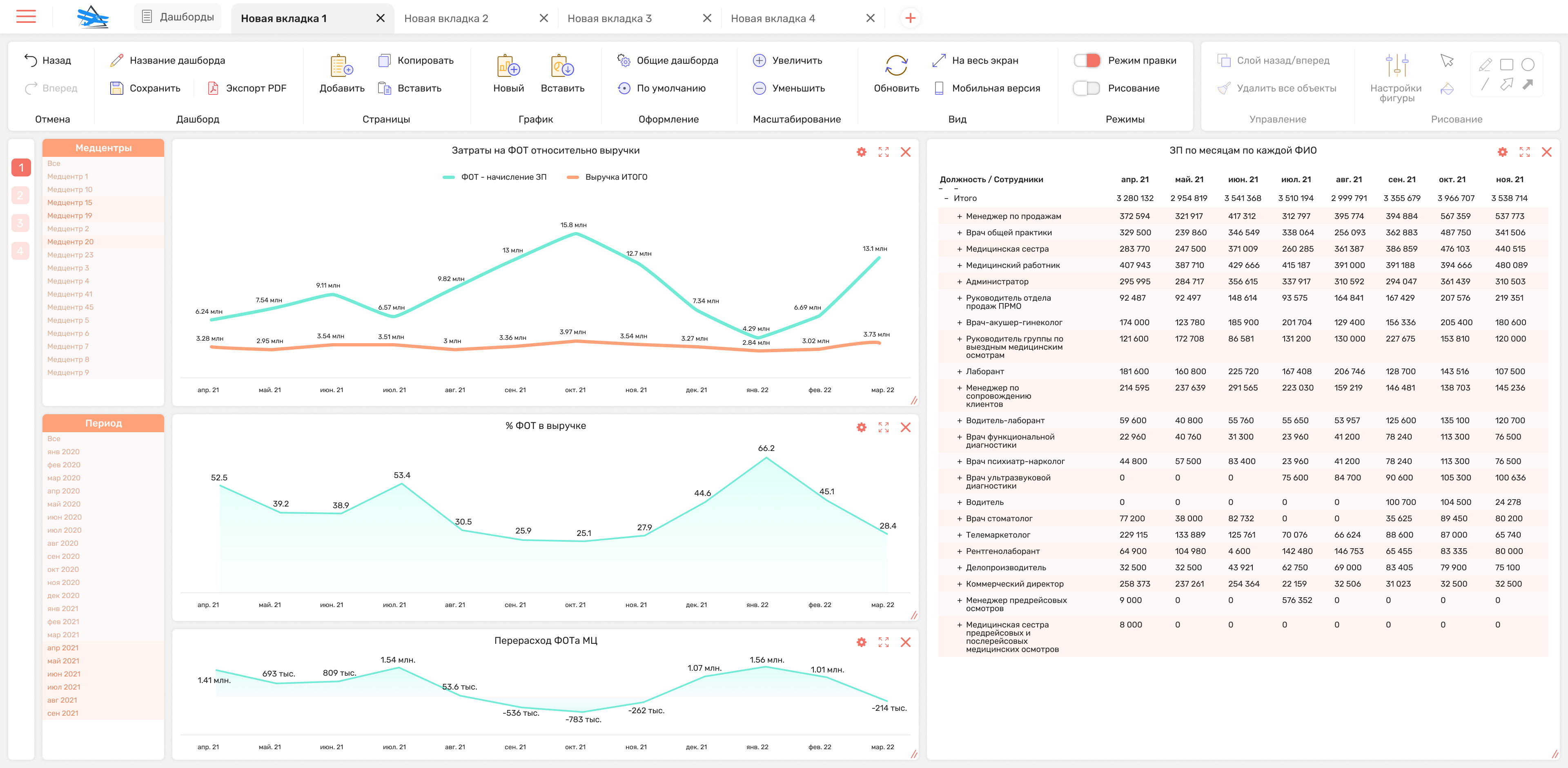 Встроенный конструктор дашбордов - в 10 раз быстрее создавайте отчеты и дашборды без использования кода (NO-CODE).