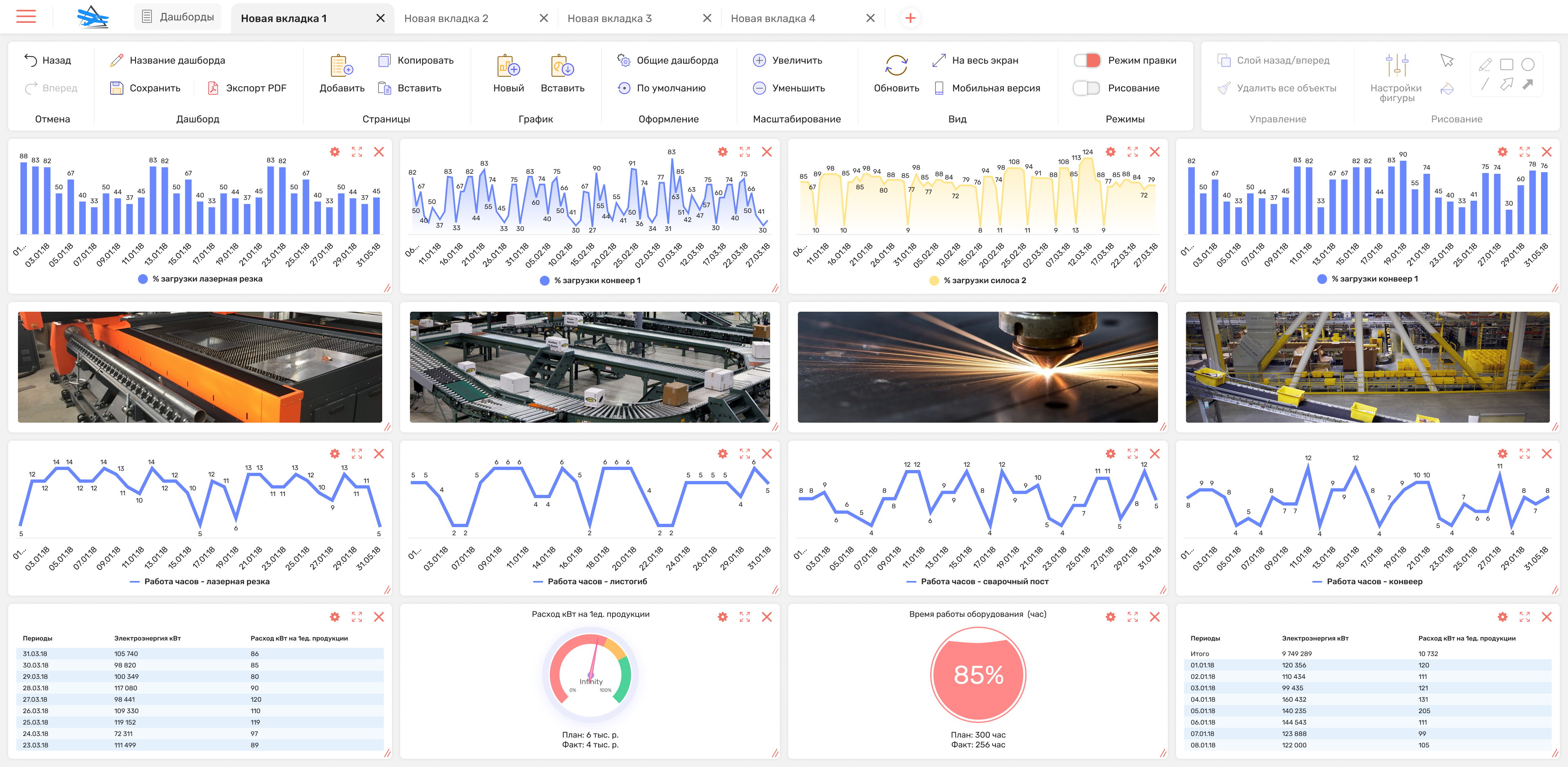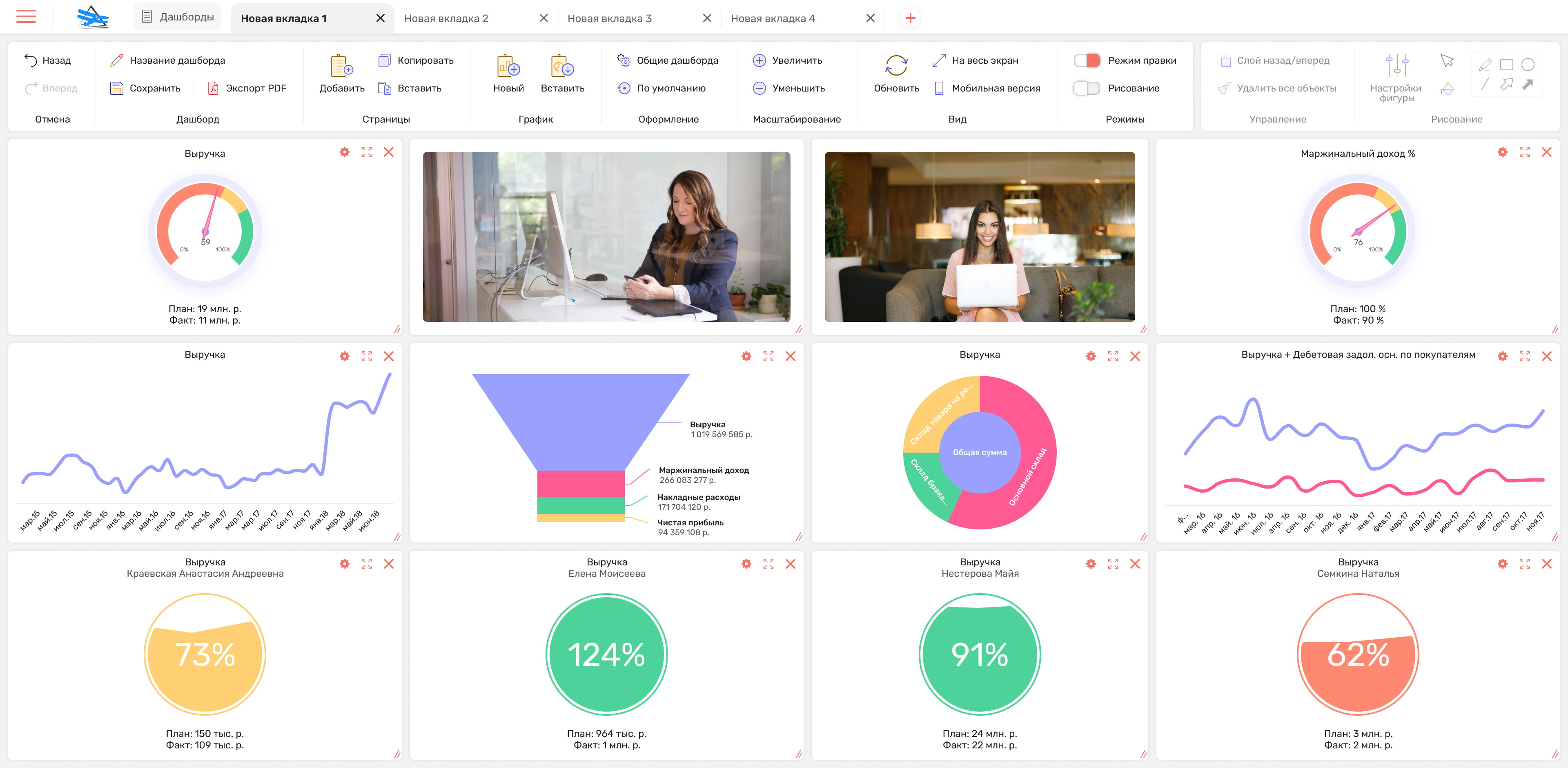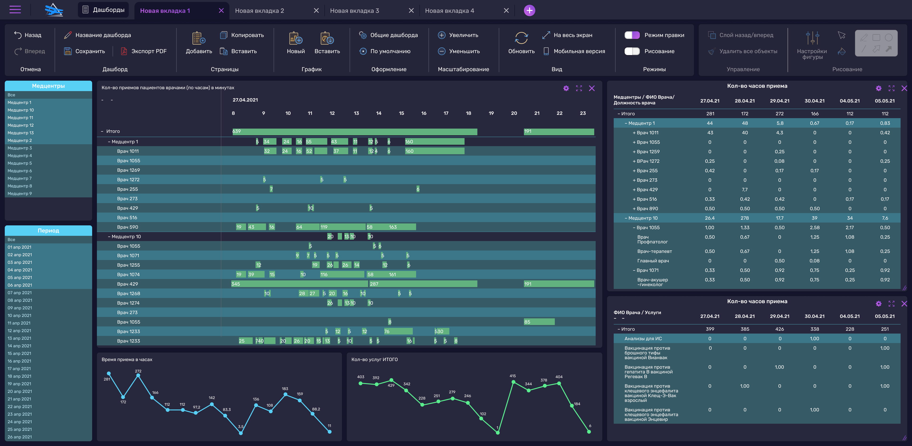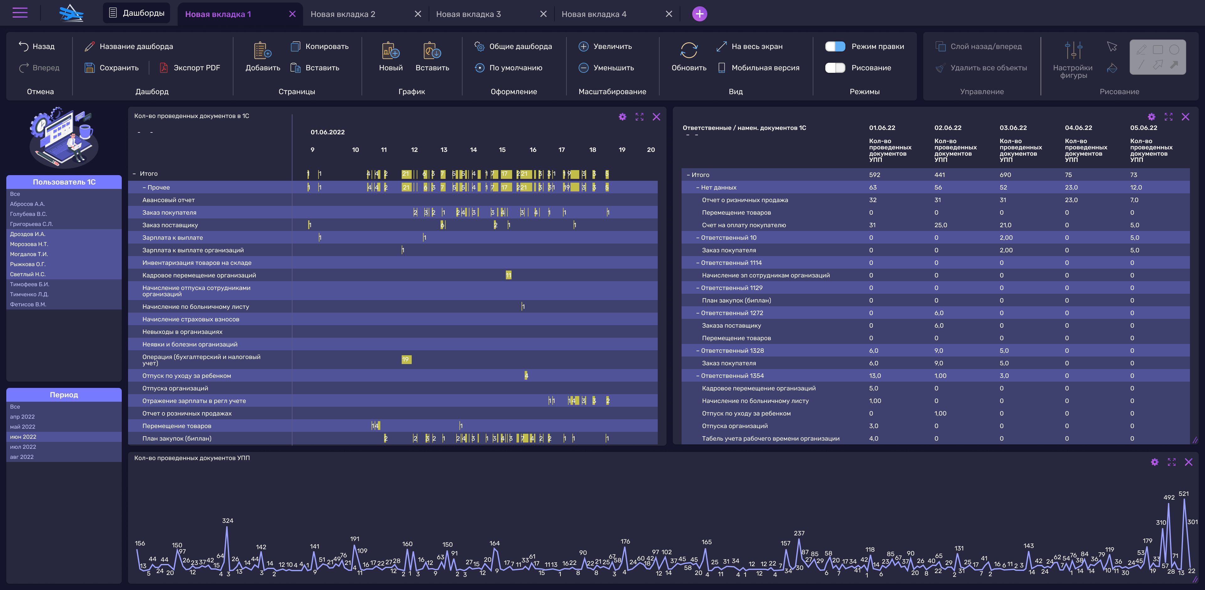 Встроенный конструктор дашбордов - в 10 раз быстрее создавайте отчеты и дашборды без использования кода (NO-CODE).