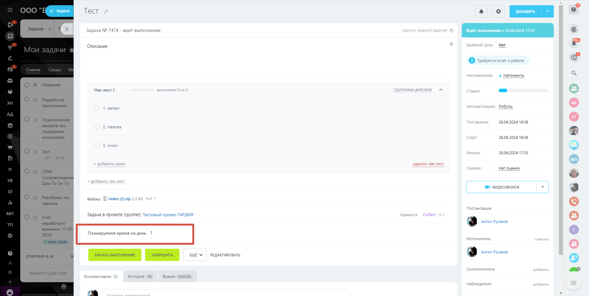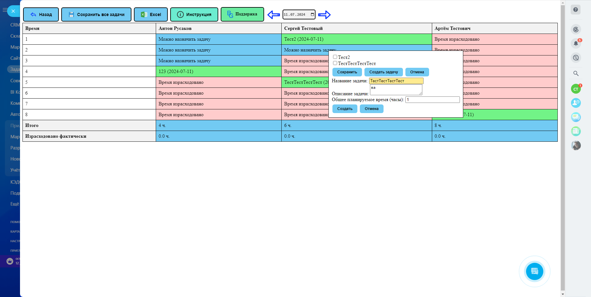 Учёт времени задач/занятости/трудозатрат сотрудников