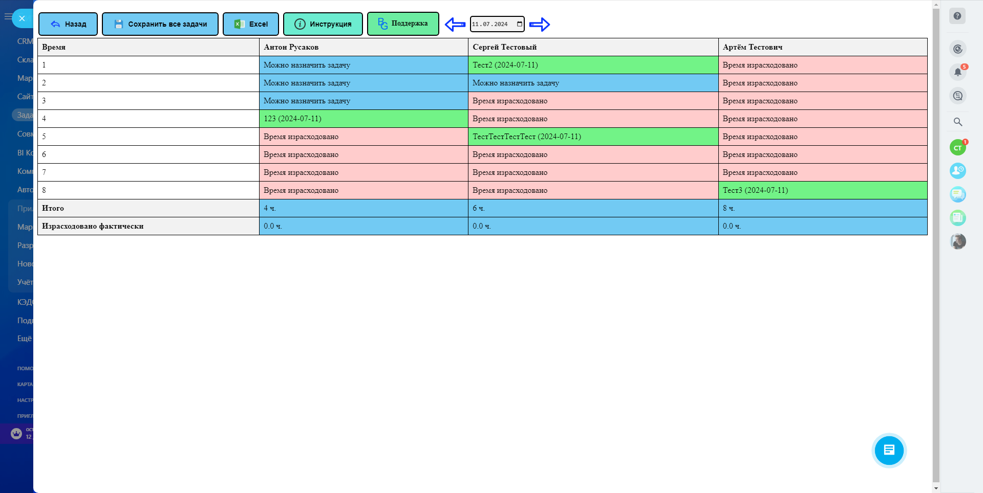 Просматривайте занятость сотрудников за конкретный день для более точного распределения нагрузки.