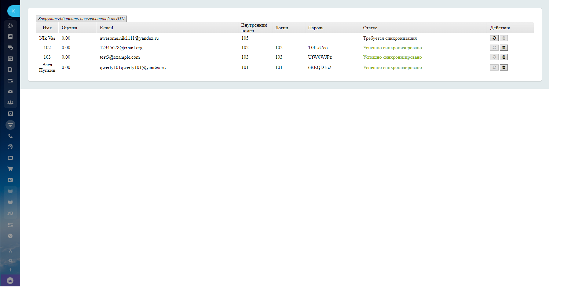 Приложение для интеграции с виртуальной АТС, предоставляемой ООО "Унител"