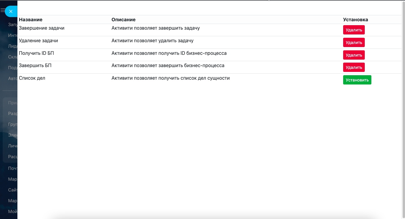 Такое активити имеет смысл применять, если у вас, к примеру, есть длящийся бизнес-процесс, в рамках которого были поставлены задачи, но изменилась ситуация, и необходимо их завершить, все или выборочно, не дожидаясь закрытия сделки или завершения бизнес-процесса.