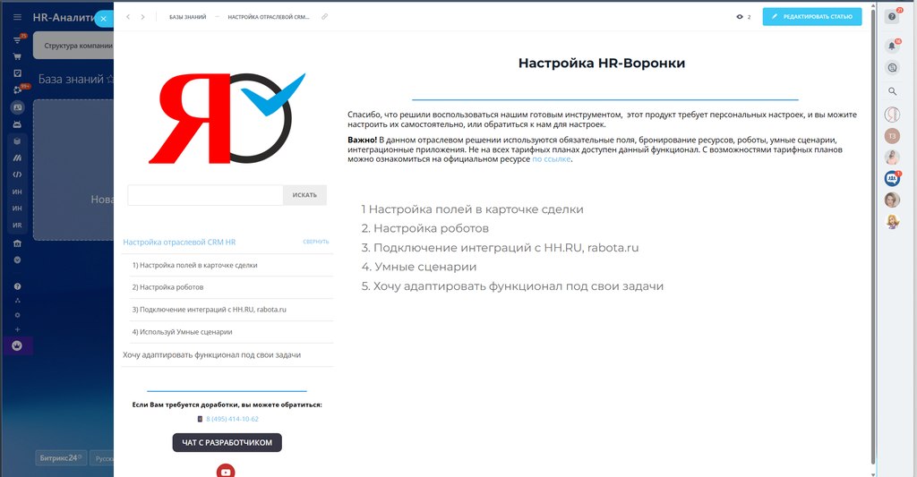 ❗Для управление автоматизаций мы создали для вас несколько предустановленных полей и подготовили инструкцию в базе знаний «Настройка отраслевой CRM HR» для ее установки на ваш Битрикс24 свяжитесь с нами - используйте ее для отладки своих сценариев. Предоставляется по запросу.