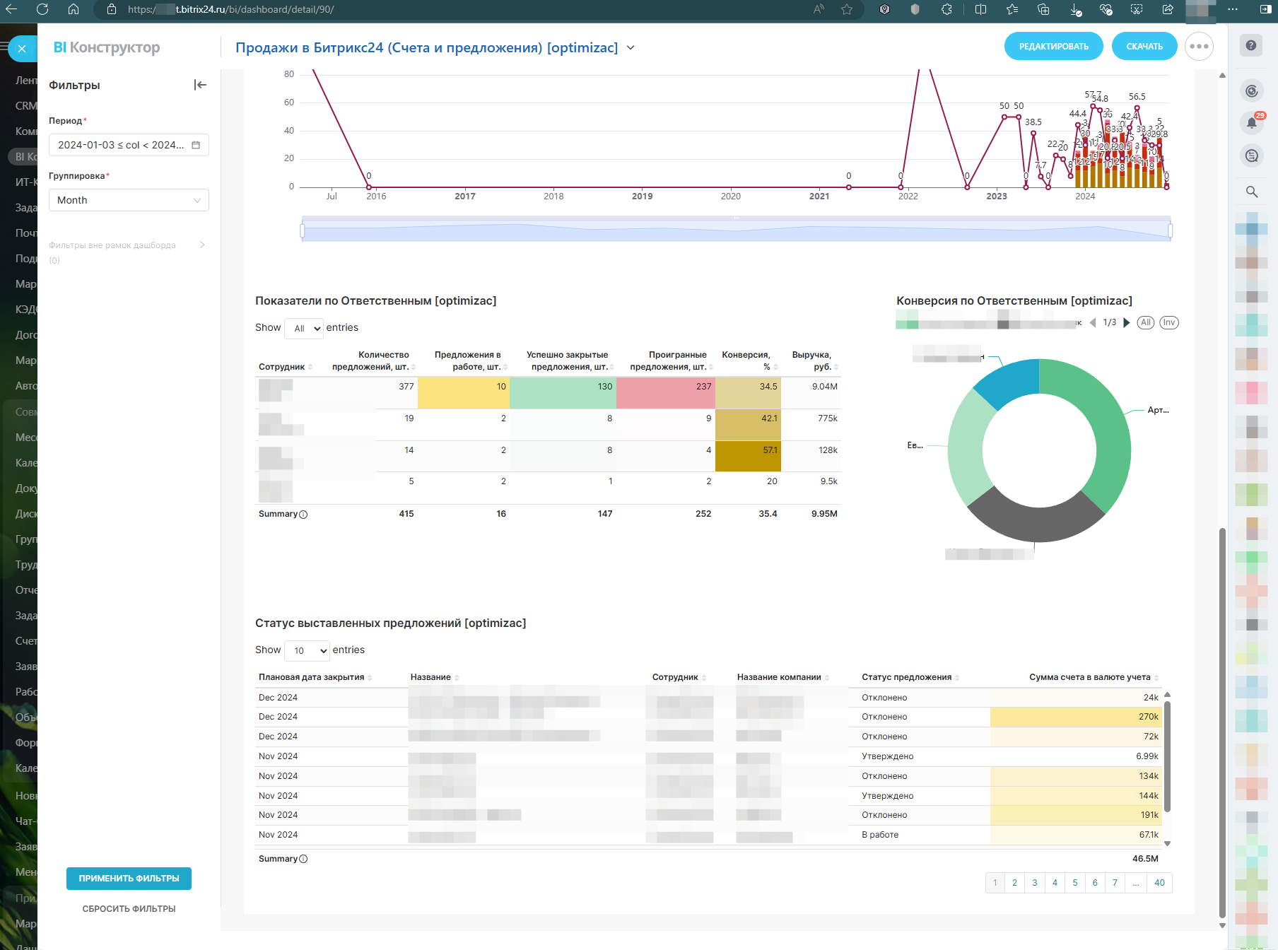 Отчет предназначен для глубокого анализа выставленных счетов и предложений в системе Битрикс24, что позволяет эффективно оценивать и оптимизировать ваши продажи.