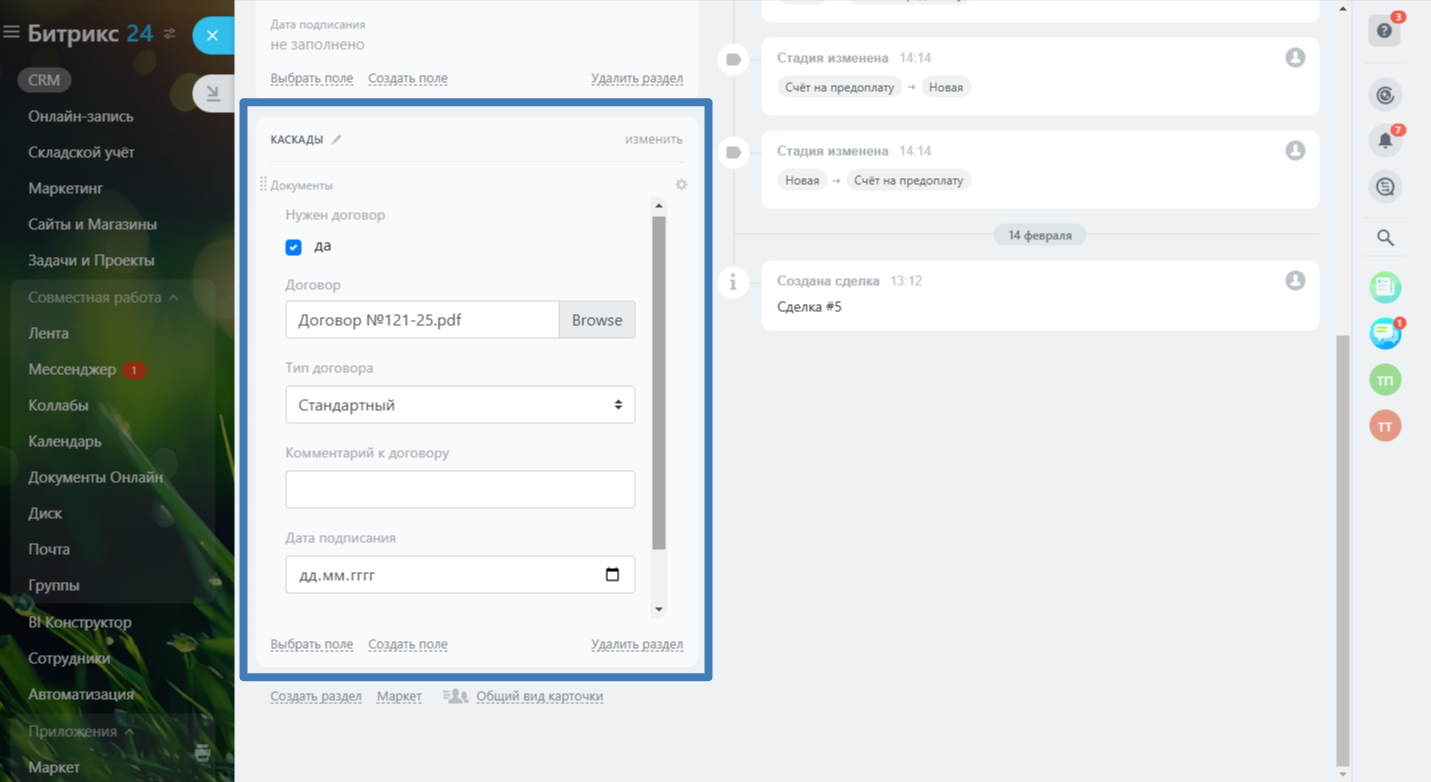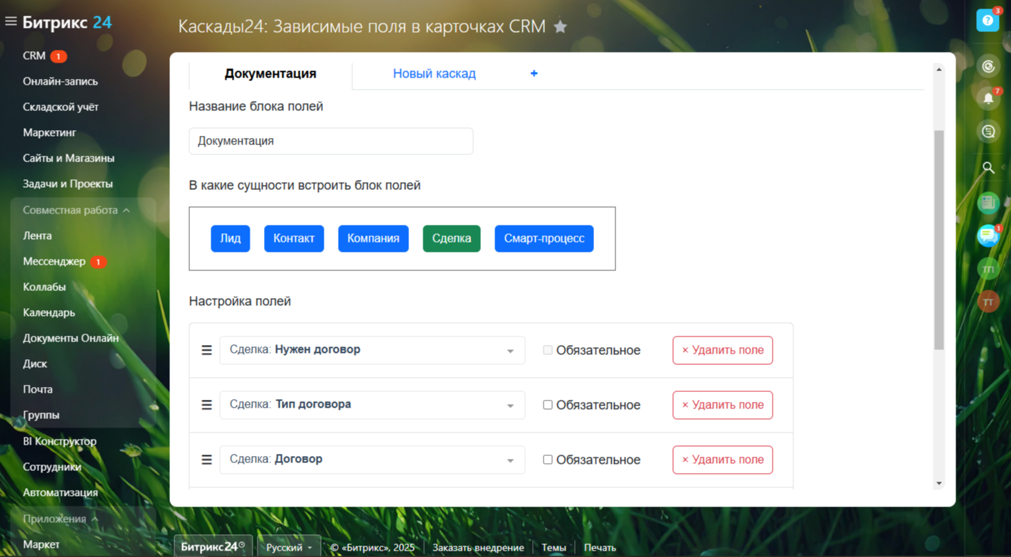 Приложение “Каскады24: Зависимые поля в карточках CRM” позволяет пользователям в удобной для них форме заполнять информацию в карточках Лидов, Сделок, Контактов, Компаний и Смарт процессах.