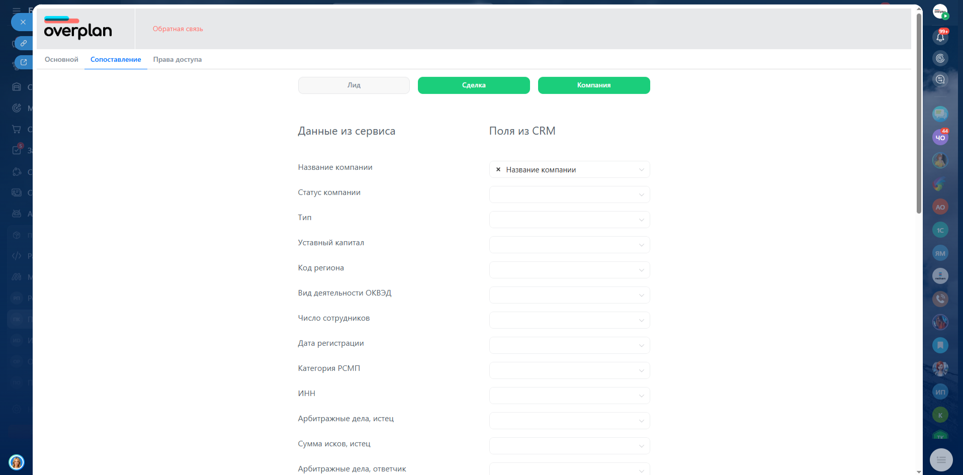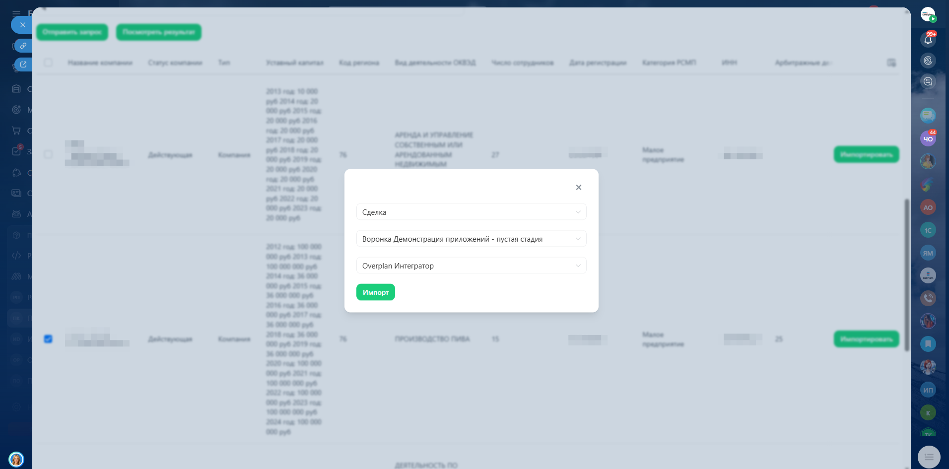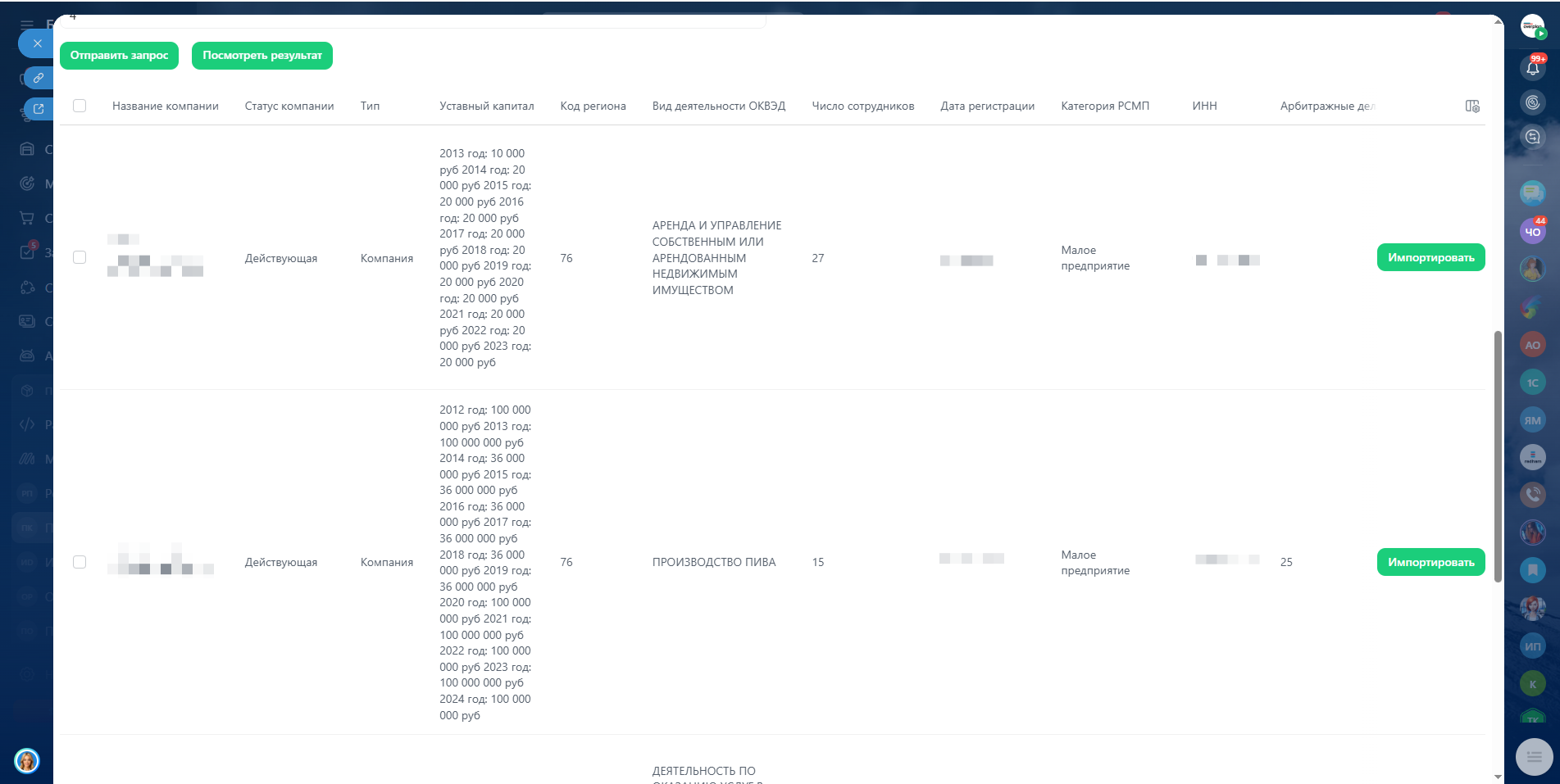 Создавать новые карточки Лидов/Сделок/Компаний по выбранным данным.