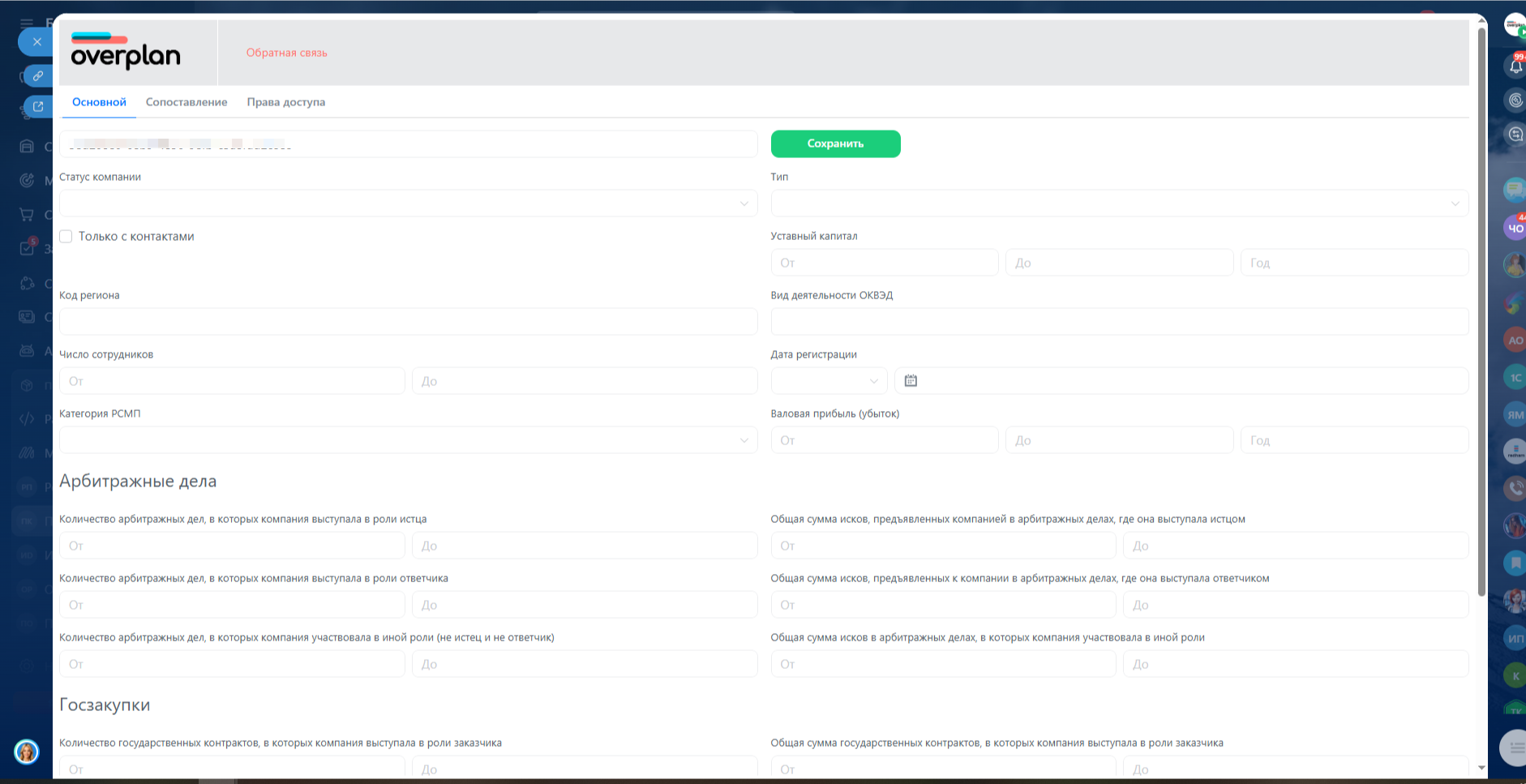 Подбирать компании по отраслям, регионам, размеру бизнеса и другим ключевым параметрам.