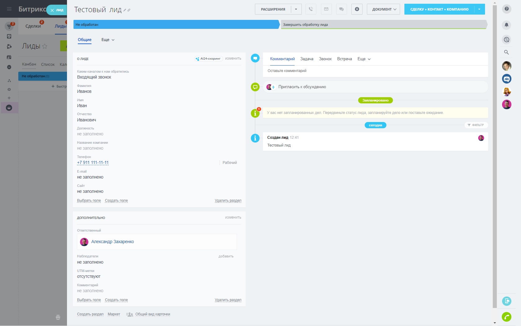 - карточка лидов;