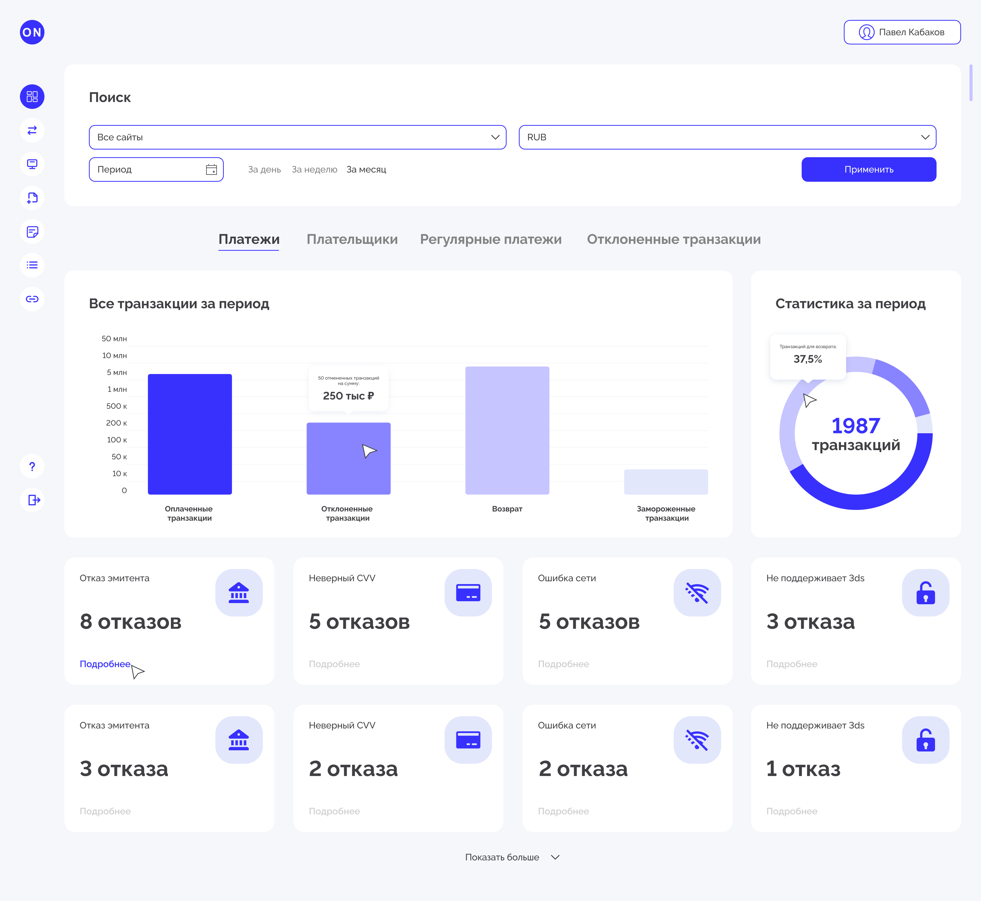 - Многофункциональный личный кабинет для управления платежами и отслеживания статистики по транзакциям