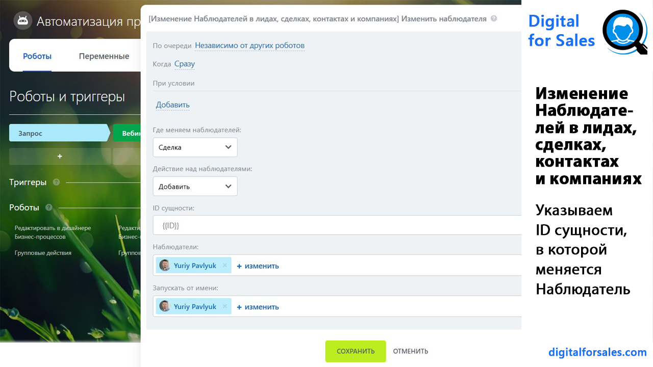 Изменение Наблюдателей в лидах, сделках, контактах и компаниях