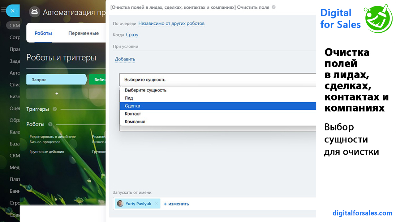А с помощью умных сценариев можно переработать всю имеющуюся базу Сделок, Контактов или Компаний.