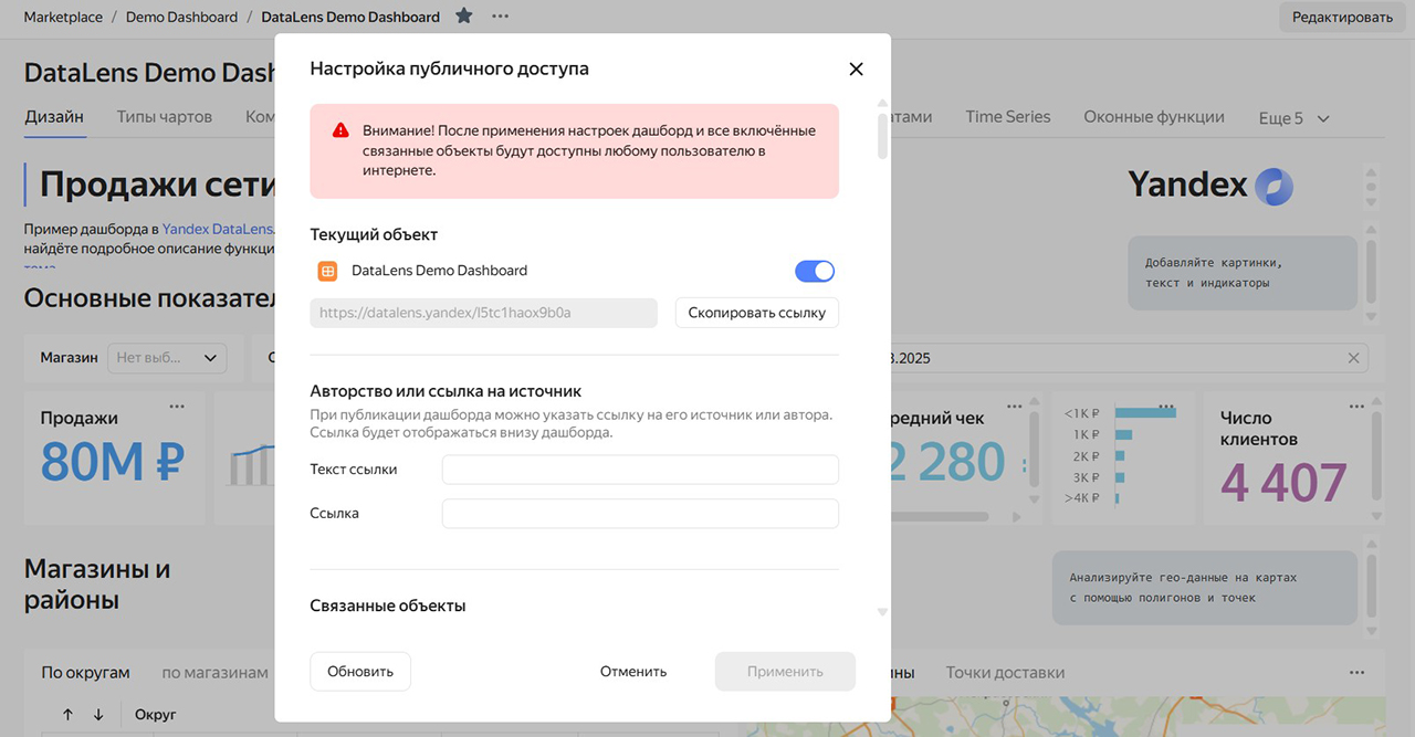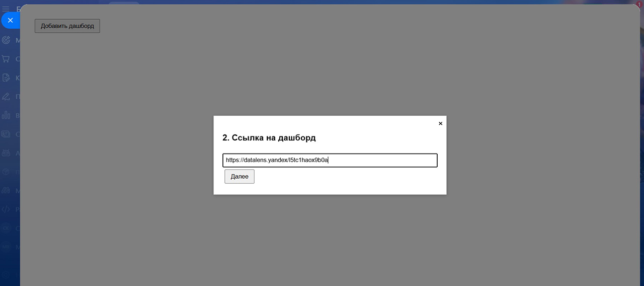 А затем добавляется ссылка на дашборд (важно, чтобы он был опубликован).