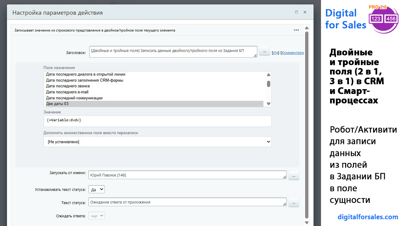 Добавлены робот и активити для передачи данных из полей в Заданиях в поля CRM-сущностей.