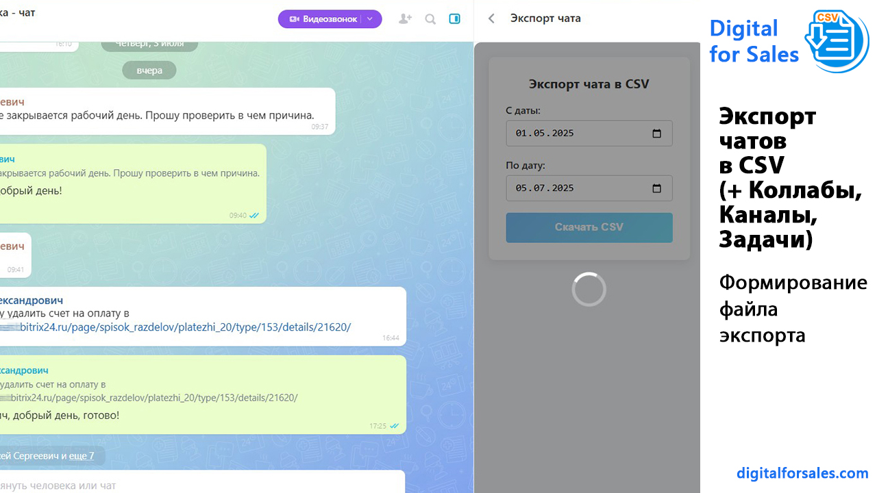 Текстовая версия видео: https://digitalforsales.com/case/eksport-chatov-v-csv-prilozhenie-dlya-crm-bitriks24