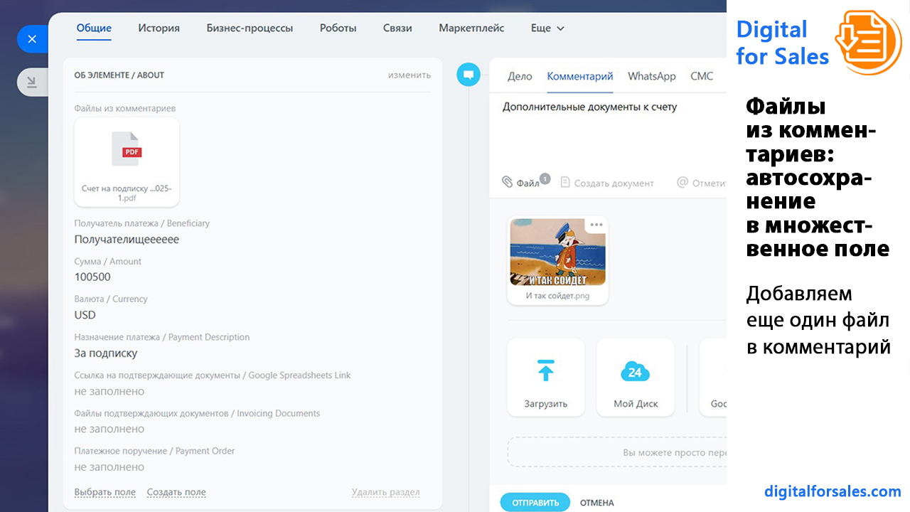 Автозапись файлов, загруженных в комментарии к CRM и смартам