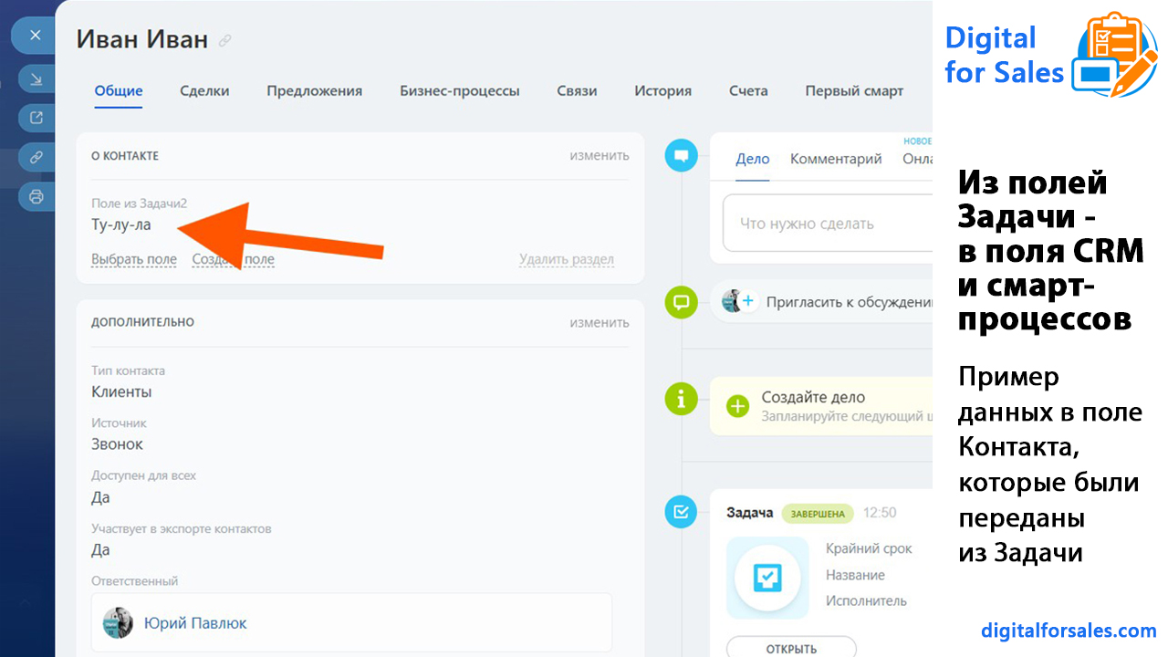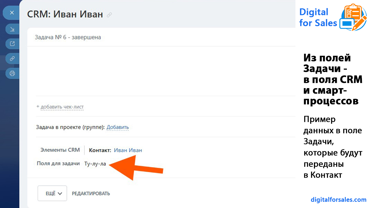 Из полей Задачи - в поля CRM и смарт-процессов
