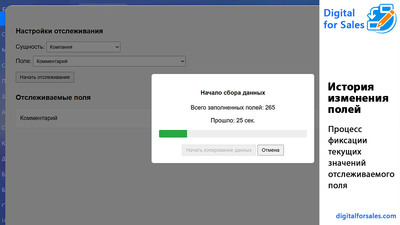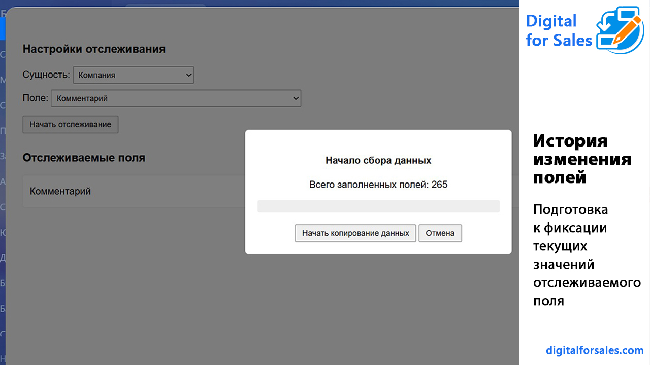 С помощью нашего приложения вы сможете указать, за какими полями следует установить “тотальную слежку”. И с этого момента начнет фиксироваться детальная история их изменения.