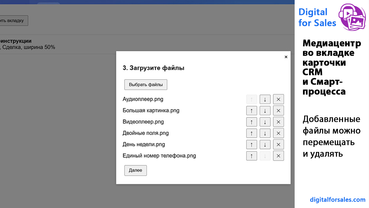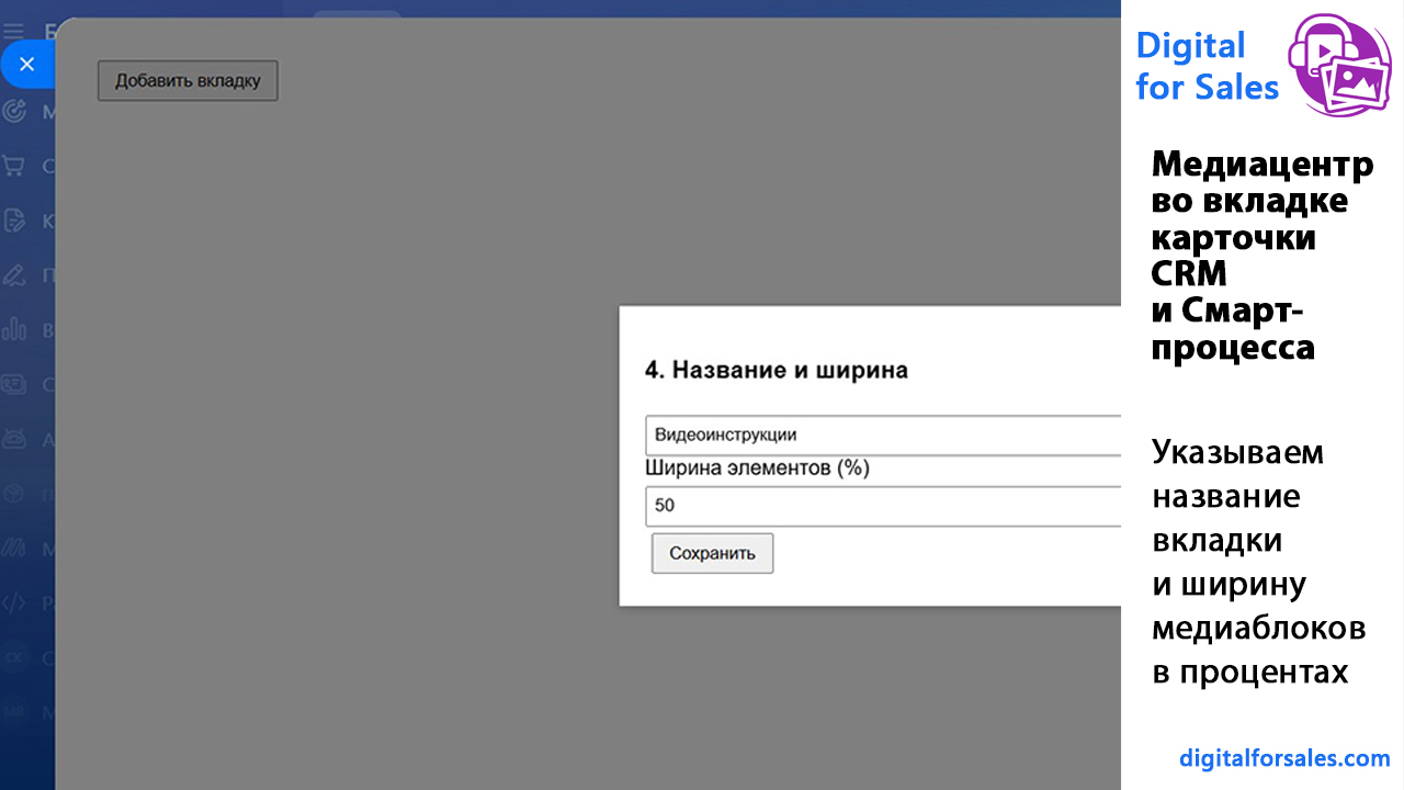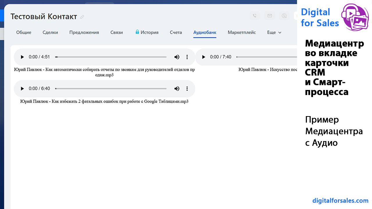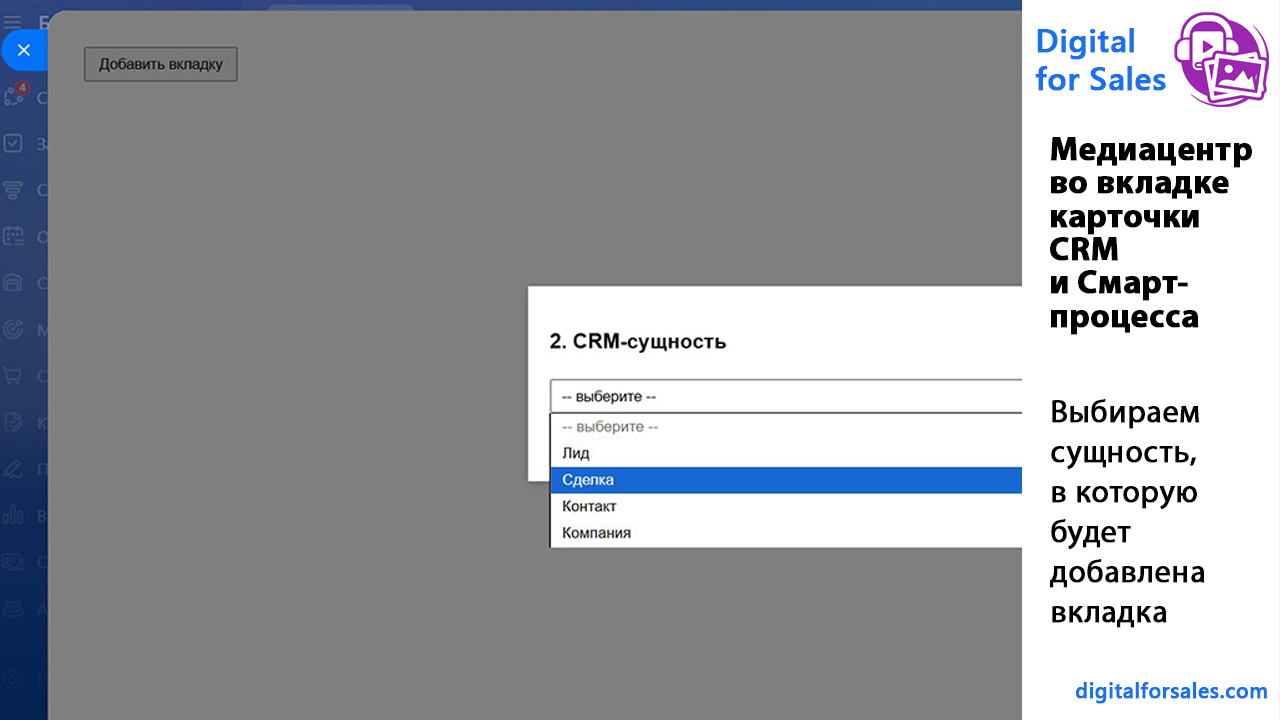 Текстовая версия видео: https://digitalforsales.com/case/mediacentr-vo-vkladke-kartochki-crm-i-smart-processa