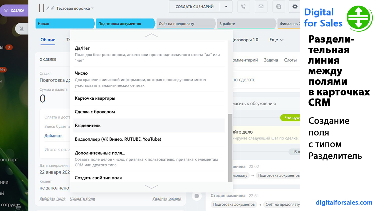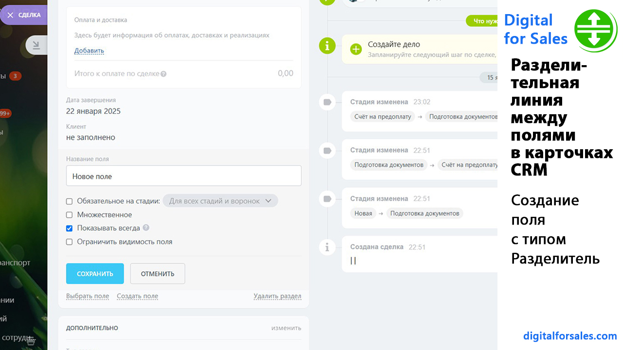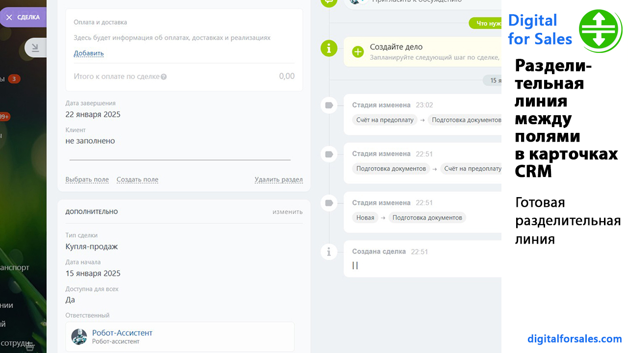 Всего пара таких линий - и карточка лида/сделки стала удобнее, ну и визуально приятнее. ... ещё