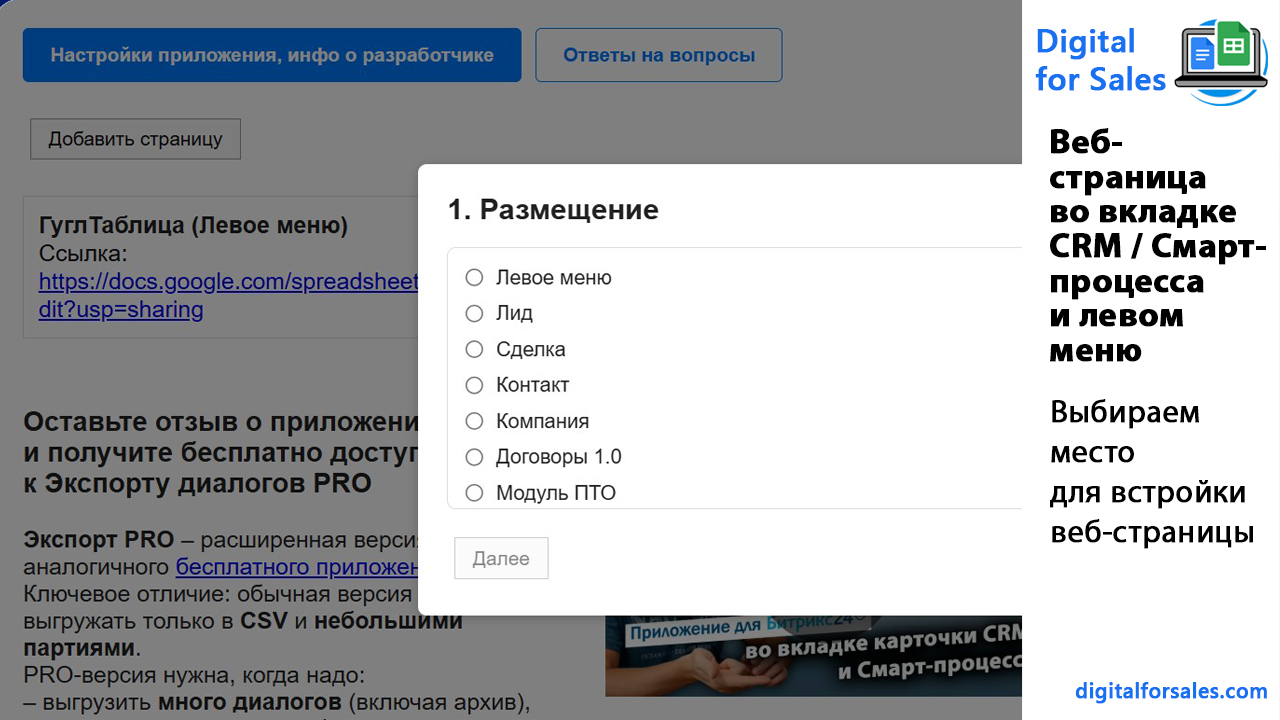 Для чего нужно приложение «Веб-страница во вкладке CRM / Смарт-процесса и левом меню»?