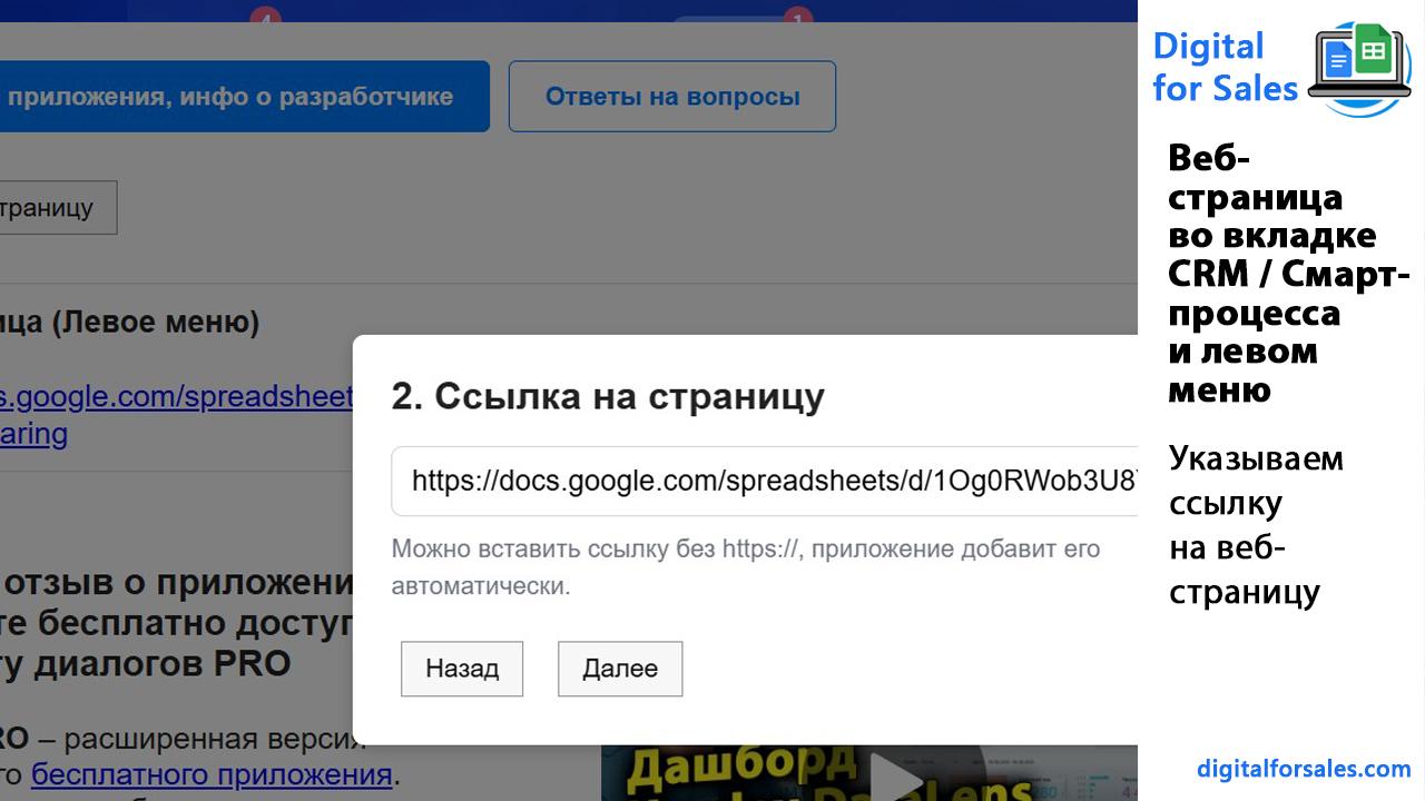 Приложение автоматически добавляет https://, если ссылка указана без протокола. Это упрощает настройку и помогает избежать ошибок при добавлении веб-страниц в Битрикс24.