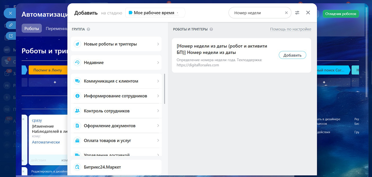 Еще одно применение – распределение входящих лидов/чатов/звонков между менеджерами в зависимости от номера недели.
