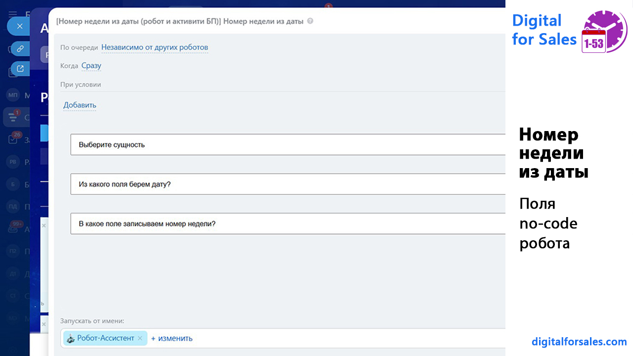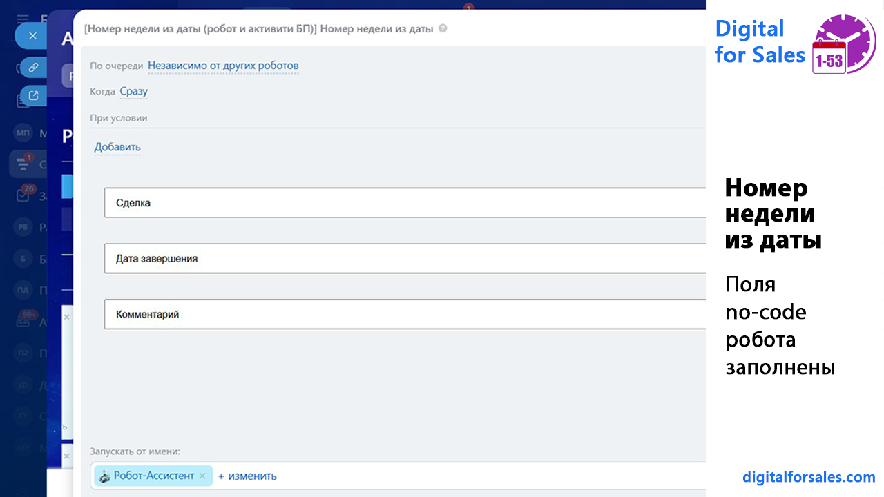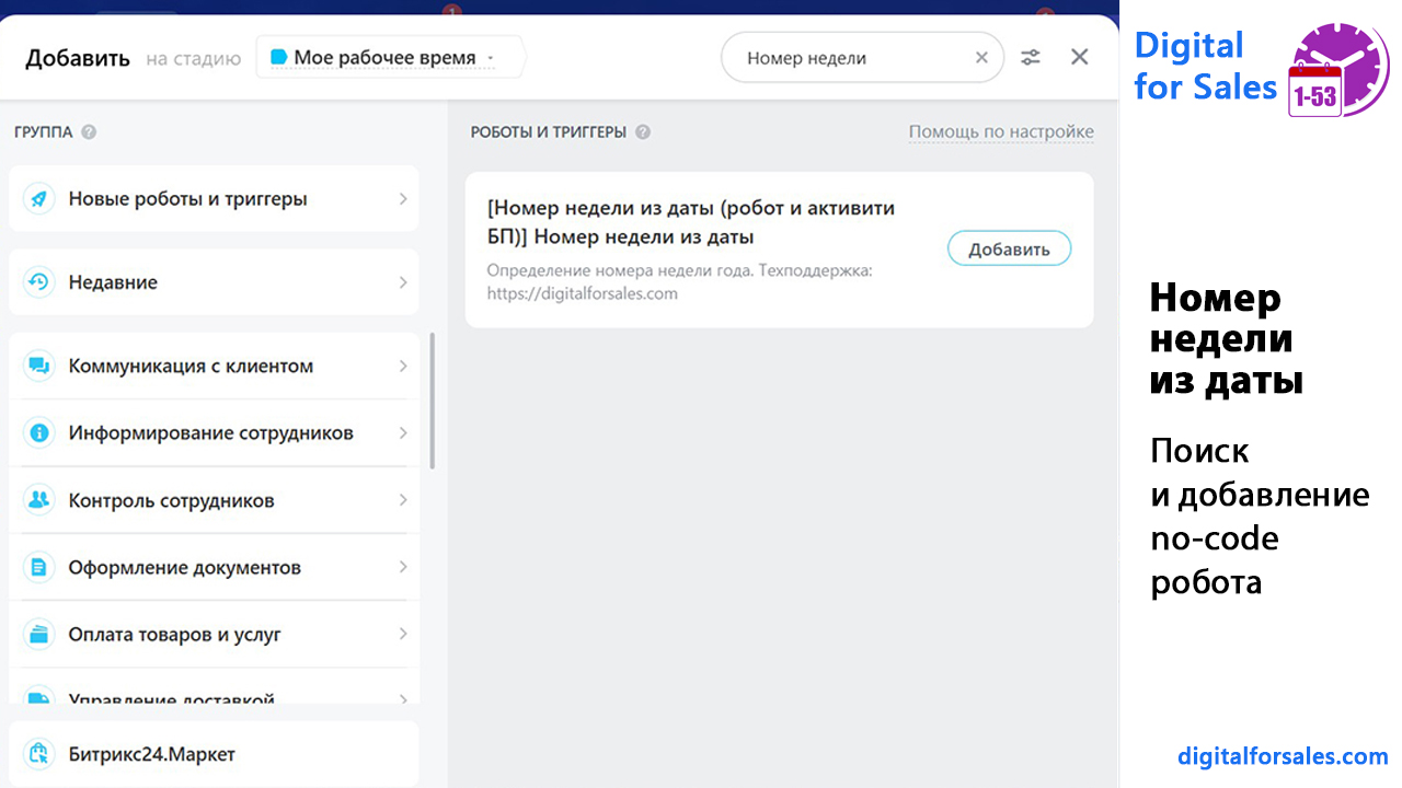 Текстовая версия видео: https://digitalforsales.com/case/nomer-nedeli-iz-daty-prilozhenie-dlya-crm-bitriks24
