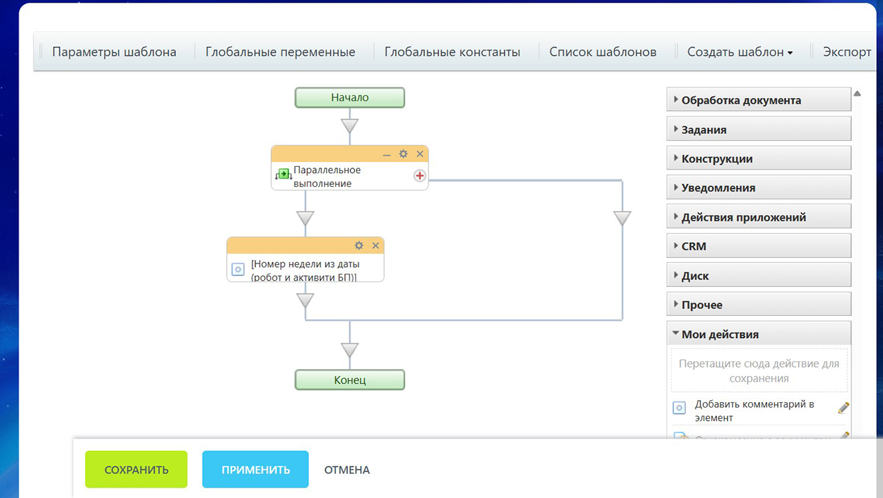 Приложение добавляет новое Активити в Дизайнер бизнес-процессов, а также нового Робота.