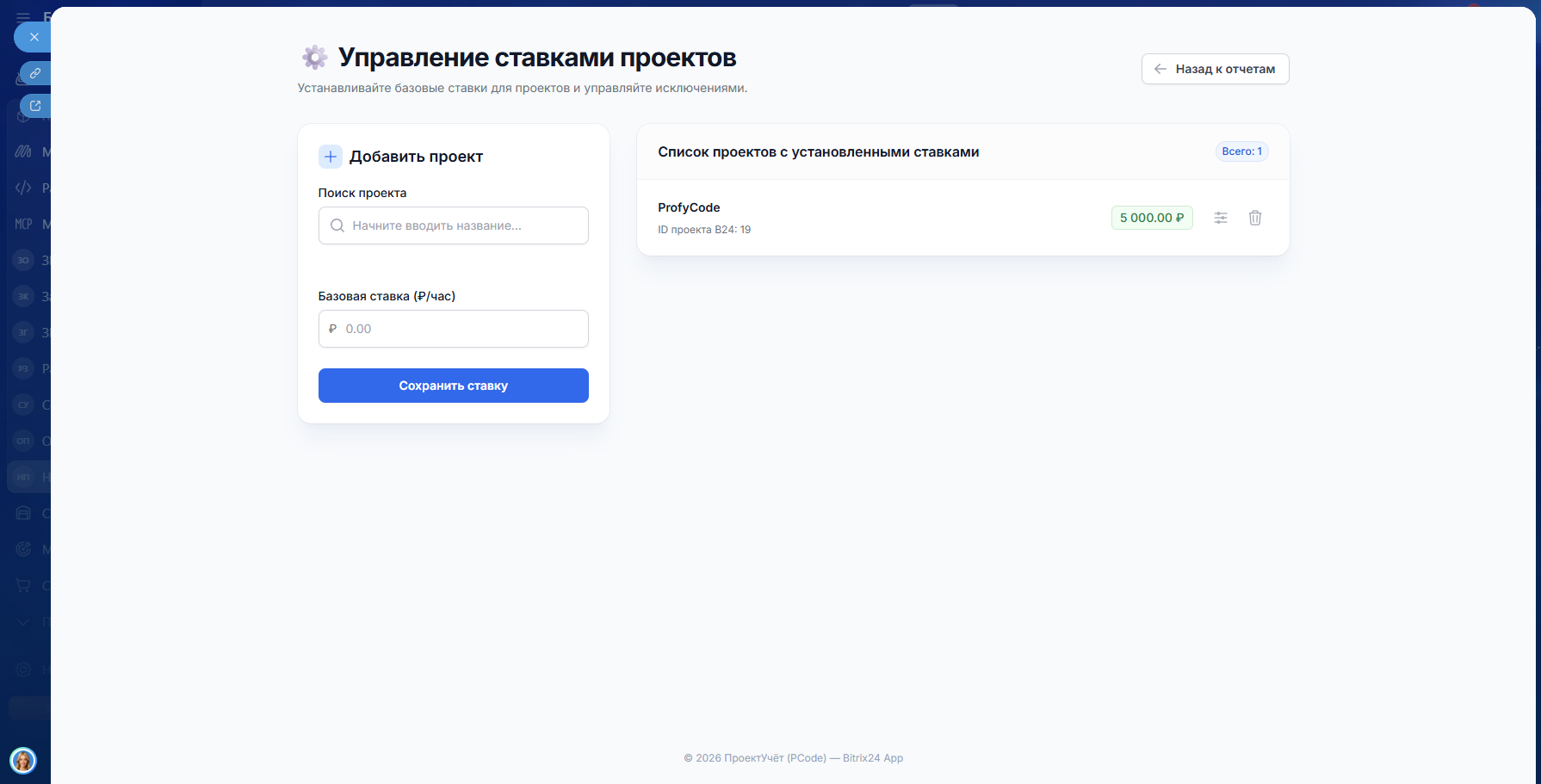ПроектУчёт — Отчёты по проектам с расчётом стоимости