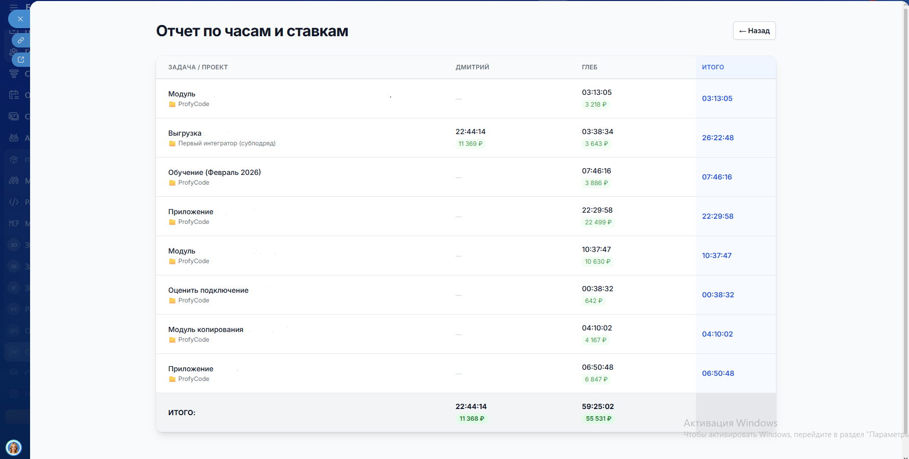 - Детализация: Раскрывайте каждую цифру вплоть до конкретной задачи и комментария к логу времени.