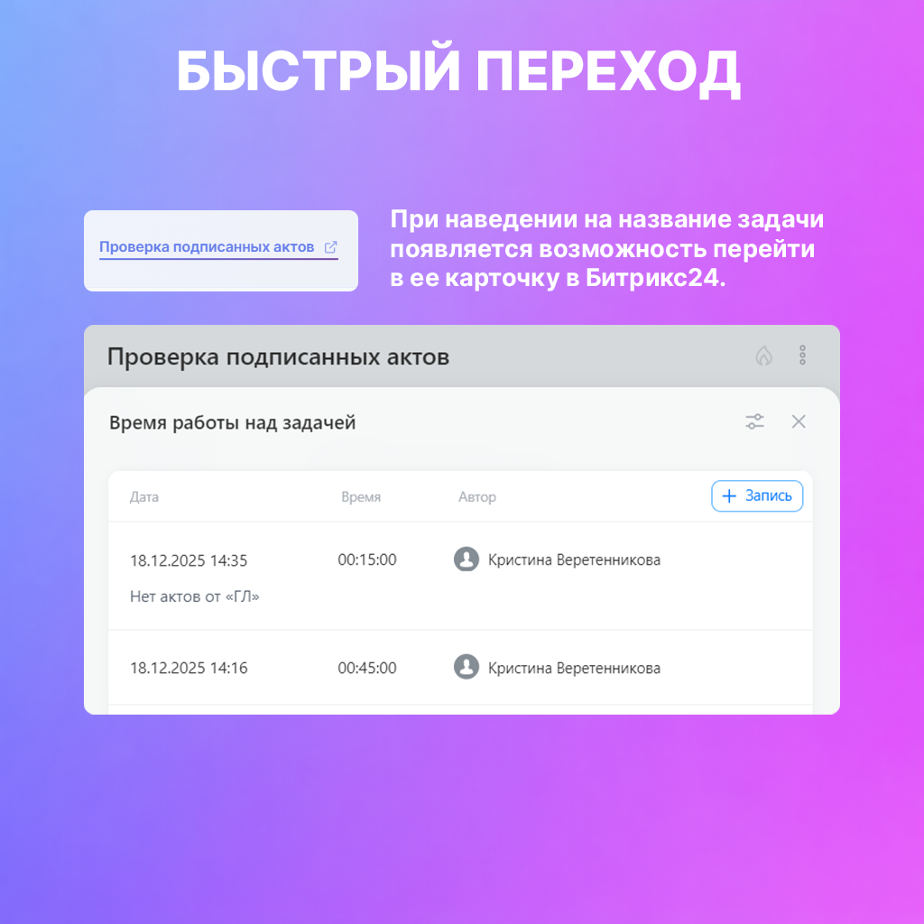 дает быстрый переход в карточку задачи Битрикс24;