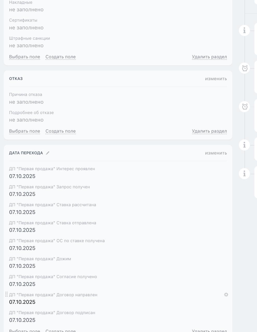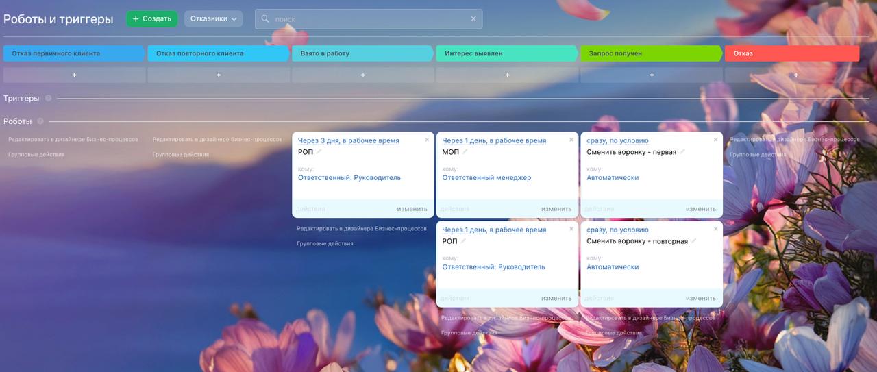 - Отказ – клиент нецелевой или перестал выходить на связь. Фиксируется причина отказа.