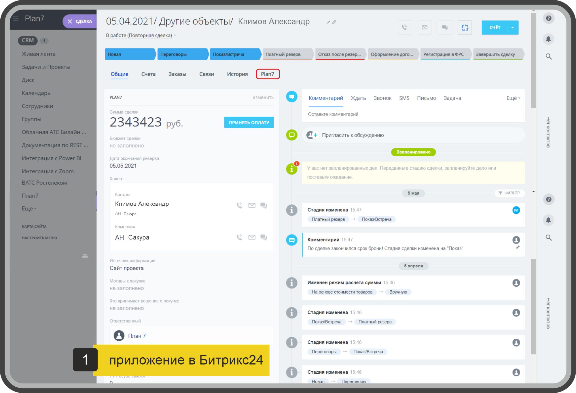 Настройка интеграции Шахматки Plan7 с Битрикс24