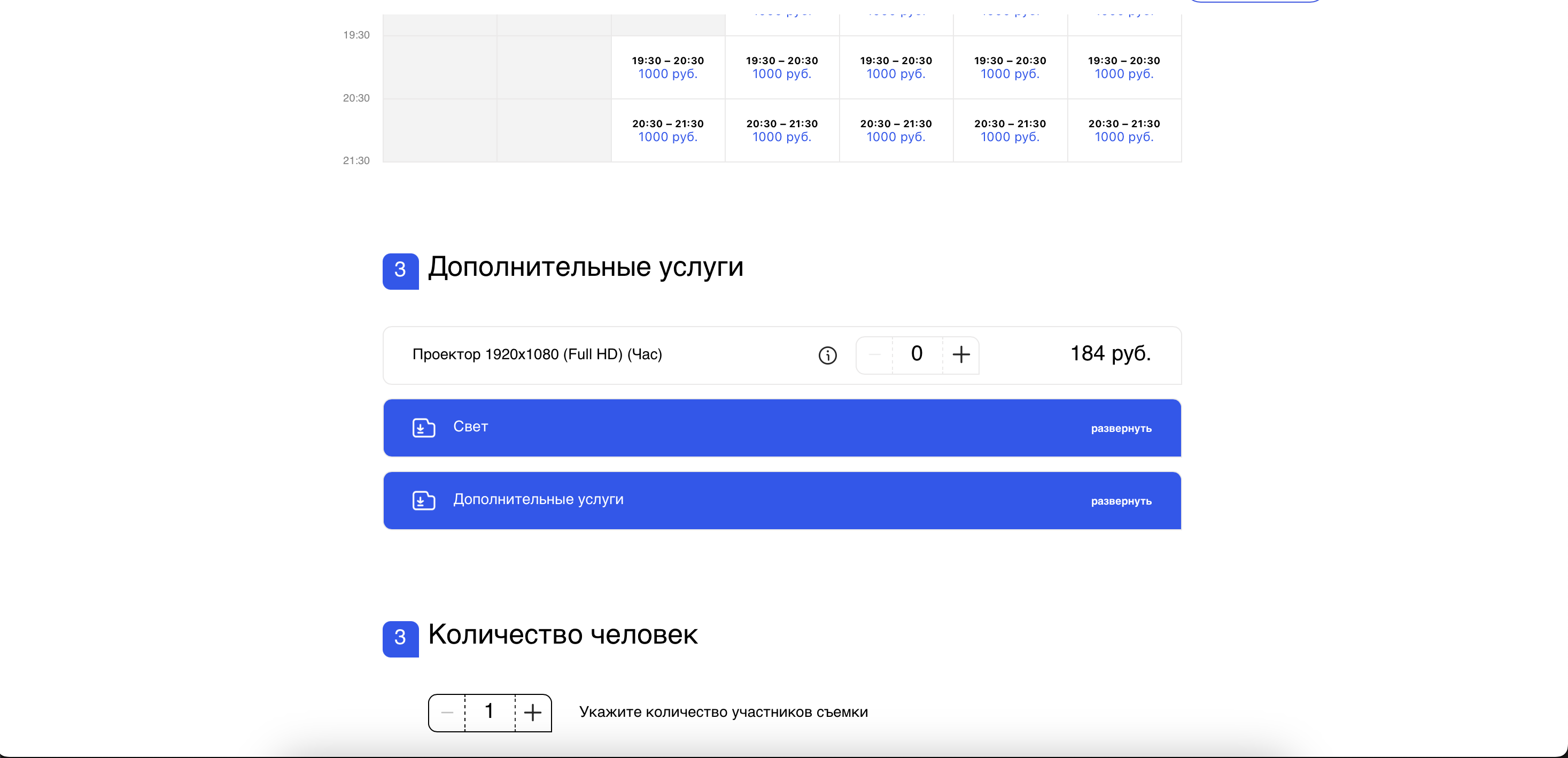 - Учитываются промокоды, наценки за часы, дни недели и количество участников.