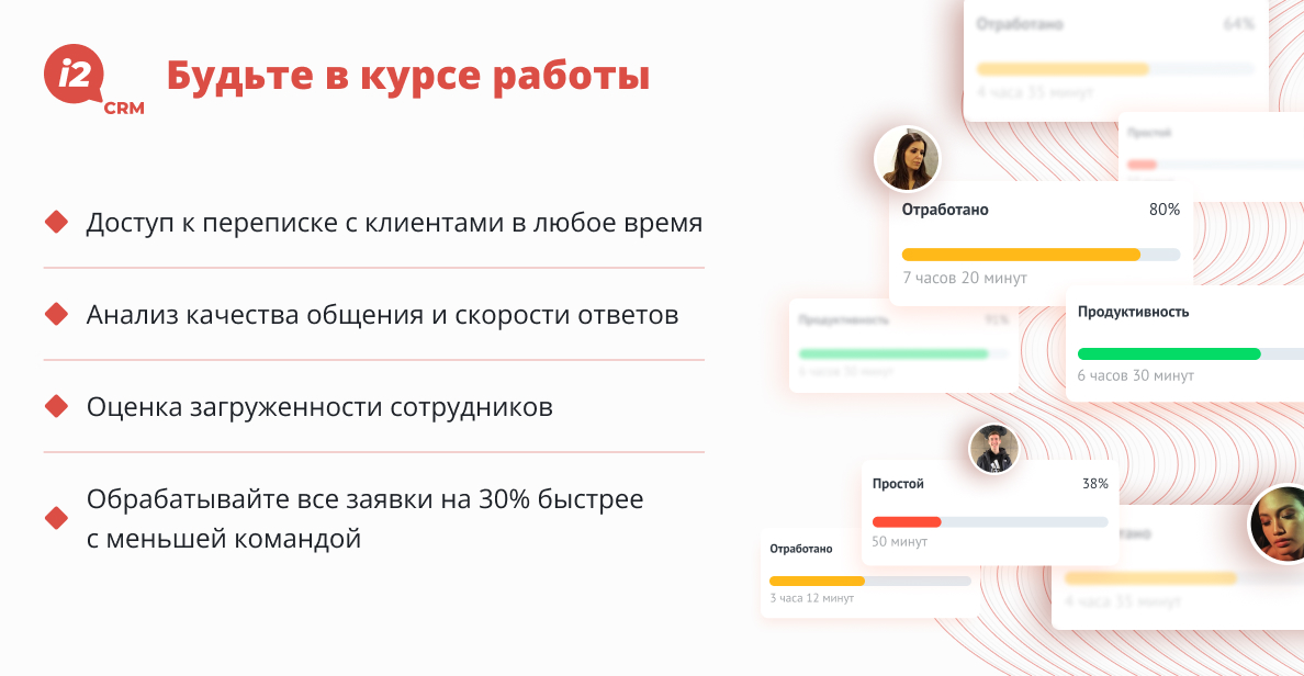 Повысить лояльность клиентов. Сервис i2crm сокращает время ответов на вопросы покупателей. Конверсия из лида в клиента растет.
