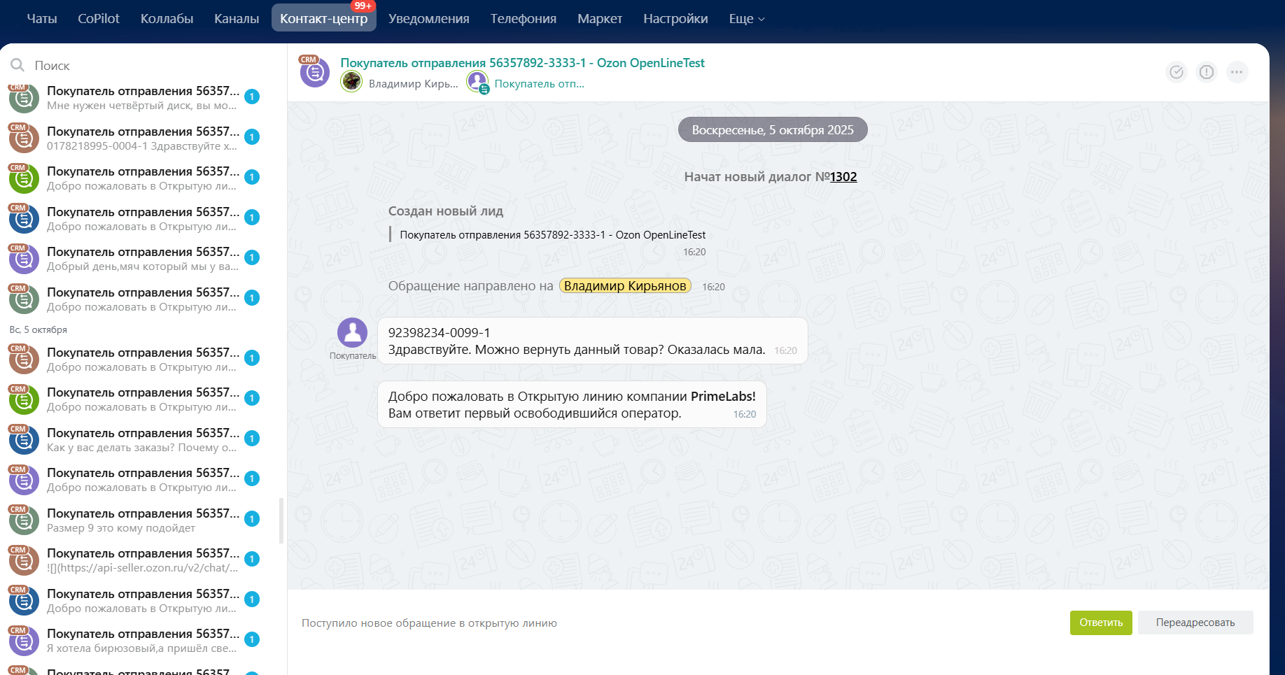 Ozon чаты для Битрикс 24