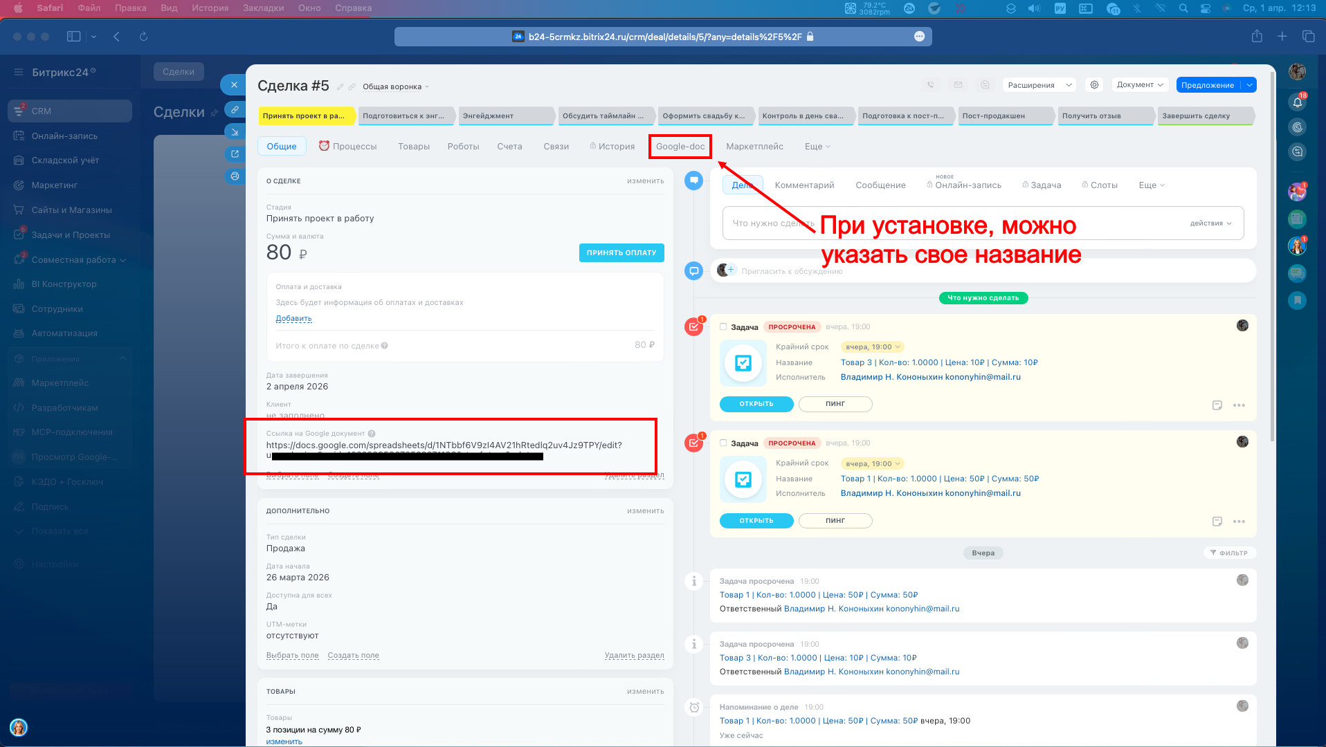 Простая установка, гибкая настройка имени вкладки и автоматизация контроля выполнения — всё это помогает структурировать взаимодействие с клиентом прямо внутри CRM.