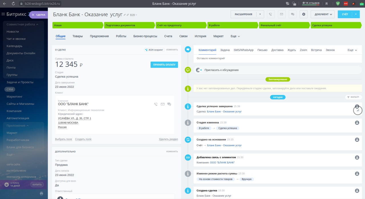 — Заводи задачи на создание новых сделок и выставление счетов.